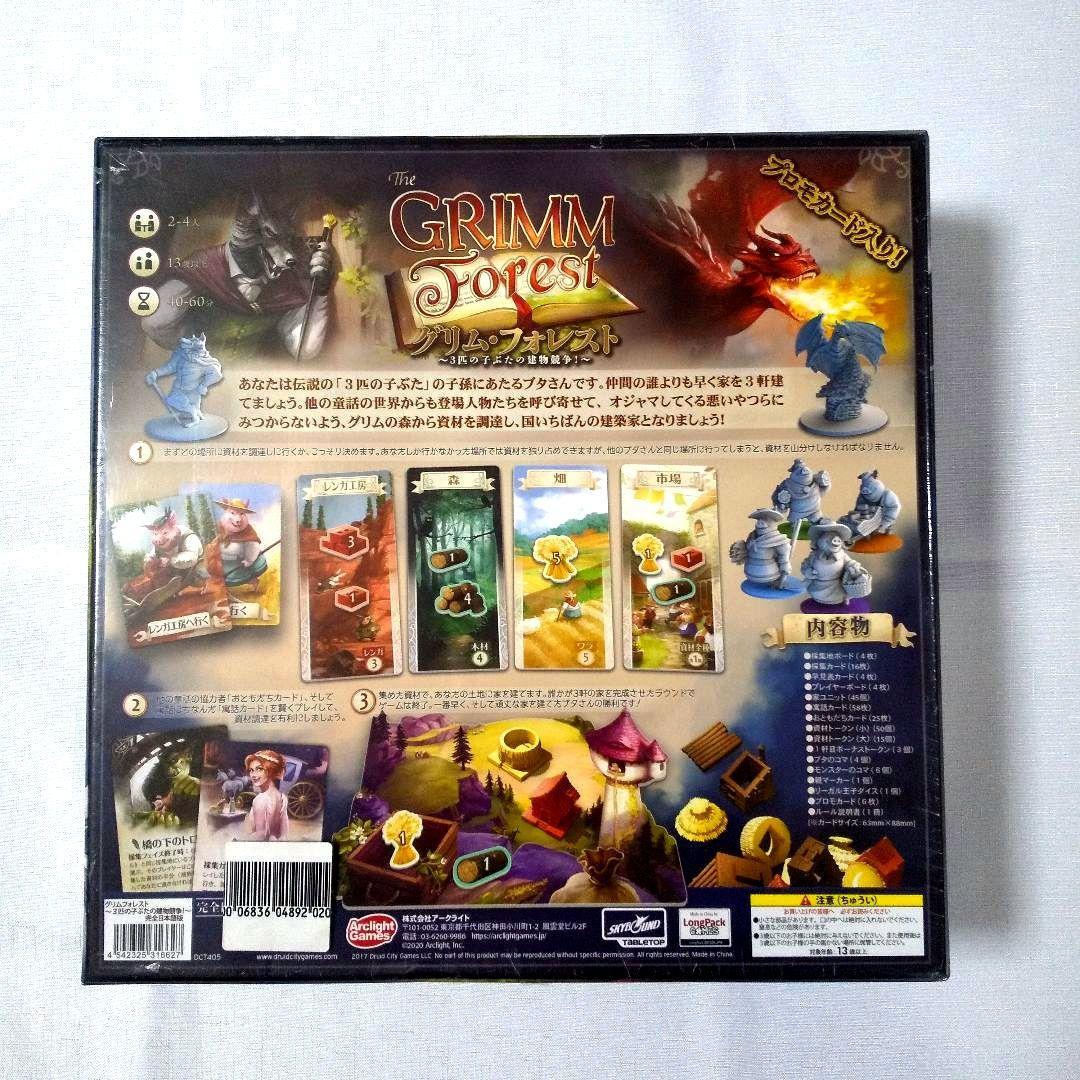1軒目ボーナストークン:3個、ブタのコマ:4個、モンスターのコマ:6個、家ユニット:45個、親マーカー:1個、リーガル王子ダイス:1個、ルール説明書:1冊、プロモカード:6枚