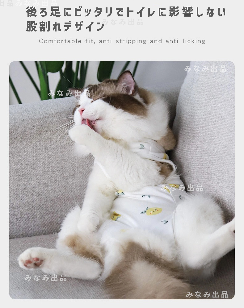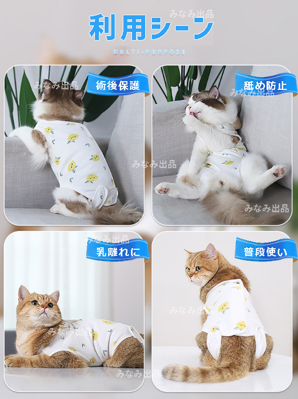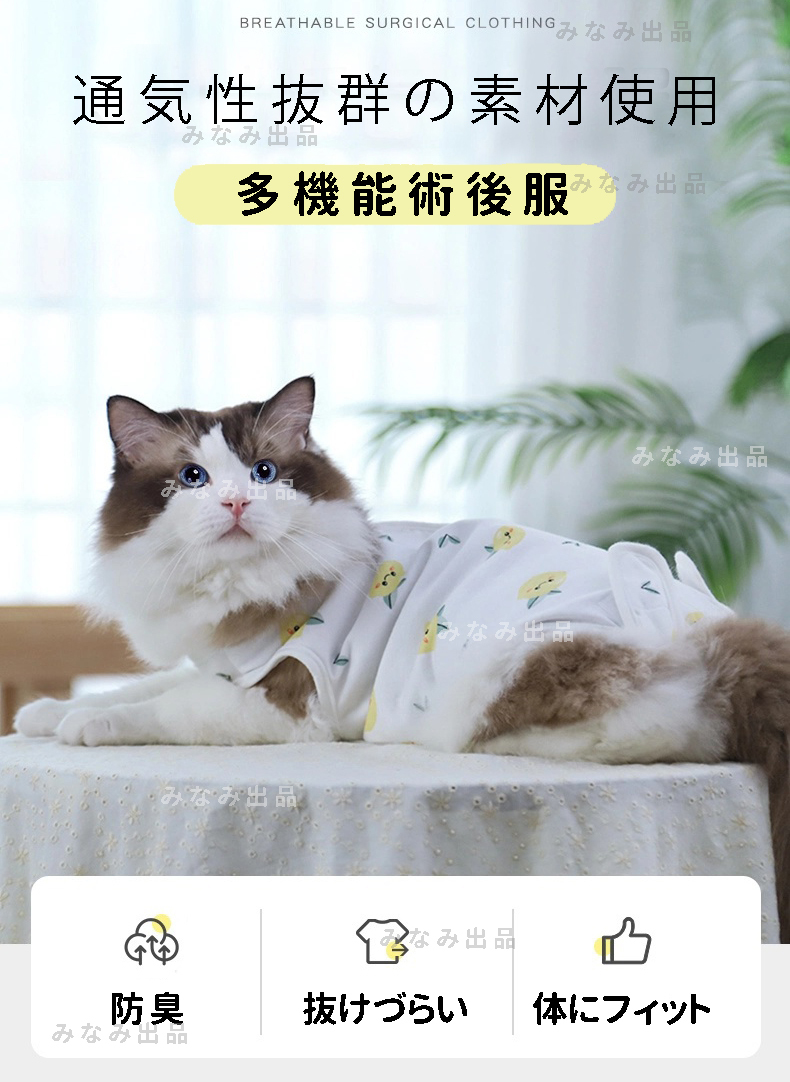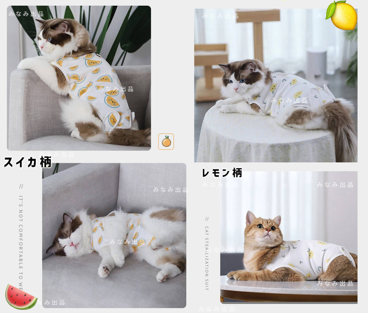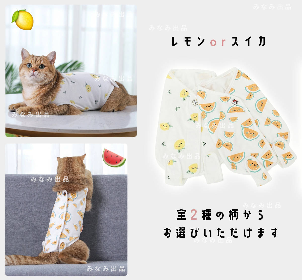 猫 小型犬 術後ウェア エリザベスカラーの代わり エリザベスカラー 抗菌素材 避妊手術 去勢手術 皮膚保護 離乳 ペット服 ペットウェア ウェア 手術服 雌猫 雌犬 傷舐め防止 犬猫兼用 夏柄