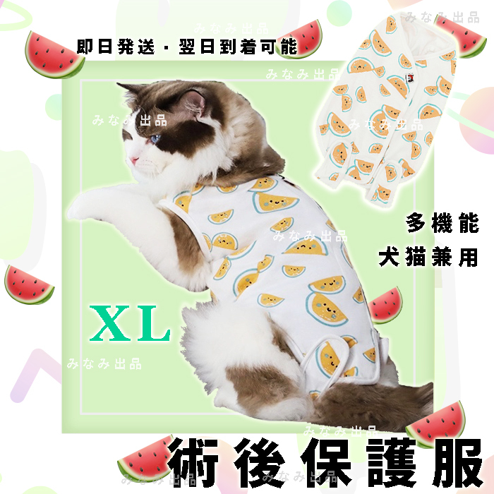 【スイカ柄XL】猫犬 術後服 離乳避妊手術 皮膚保護雌 エリザベスカラー ウェア