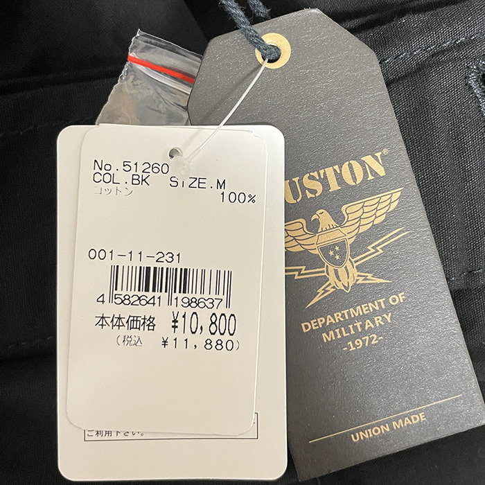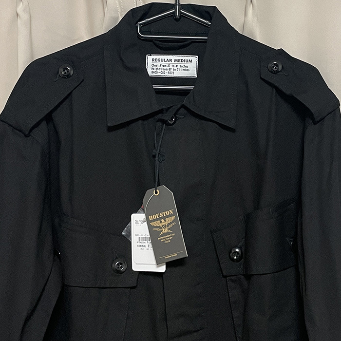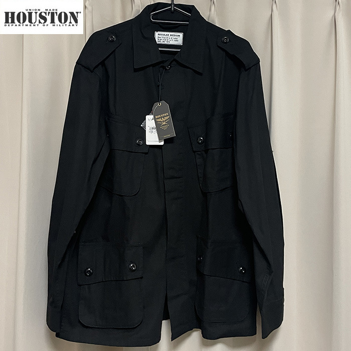 ヒューストンのジャングルファティーグジャケットです。カラーはブラックです。素材はコットン100%、表記SIZEはM 実寸 着丈74cm 肩幅48cm 身幅57cm 袖丈62cm(素人採寸ですのでご了承ください)。タグ付き新品未使用品です。送料無料(メール便発送)にいたしますのでどうぞよろしくおねがいします。