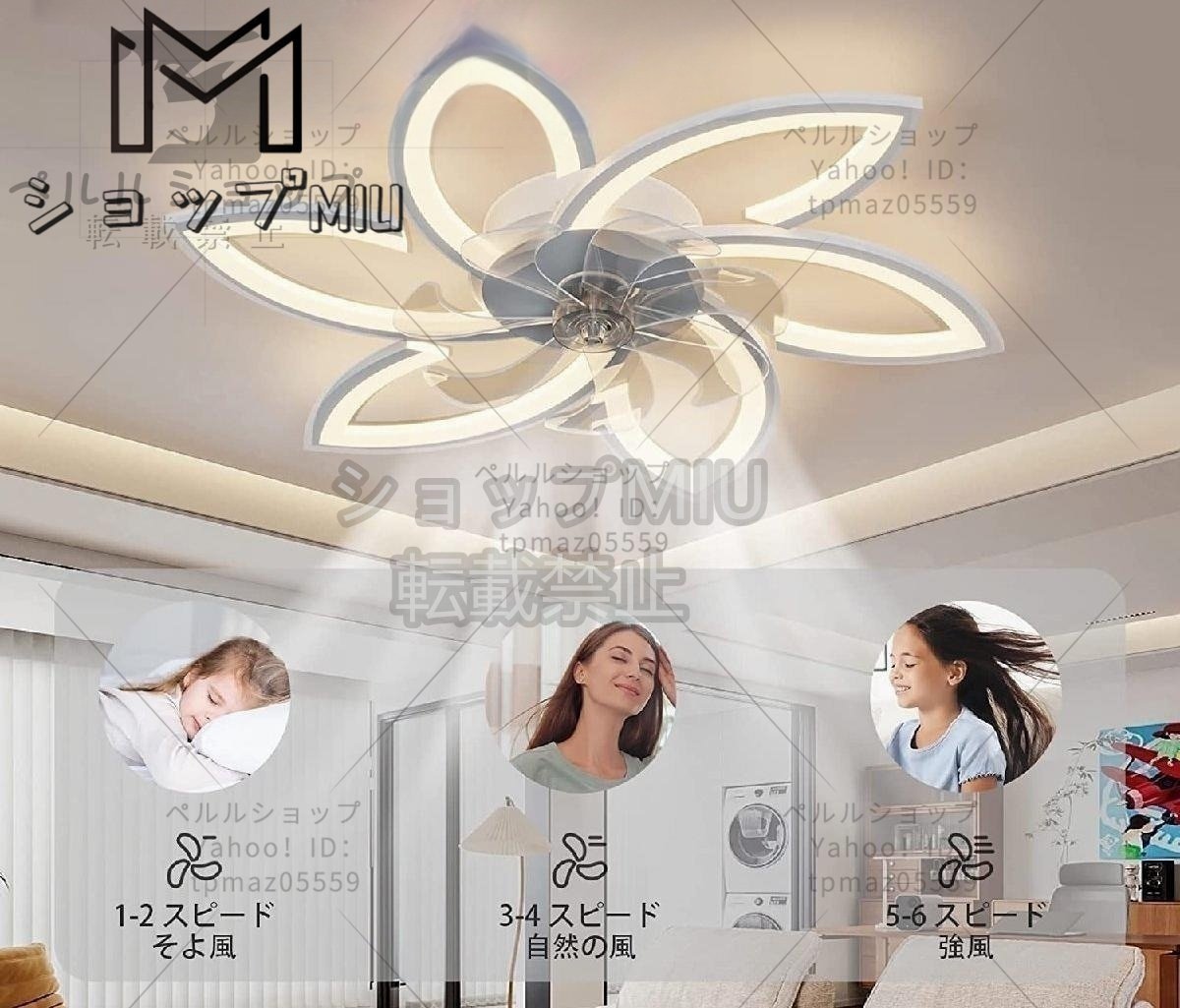 高品質☆現代風LEDシーリングファンライト、照明天井ファン、リモコン制御、3種類のライトカラー、6種類の風速モード ファ
