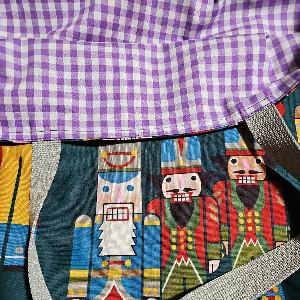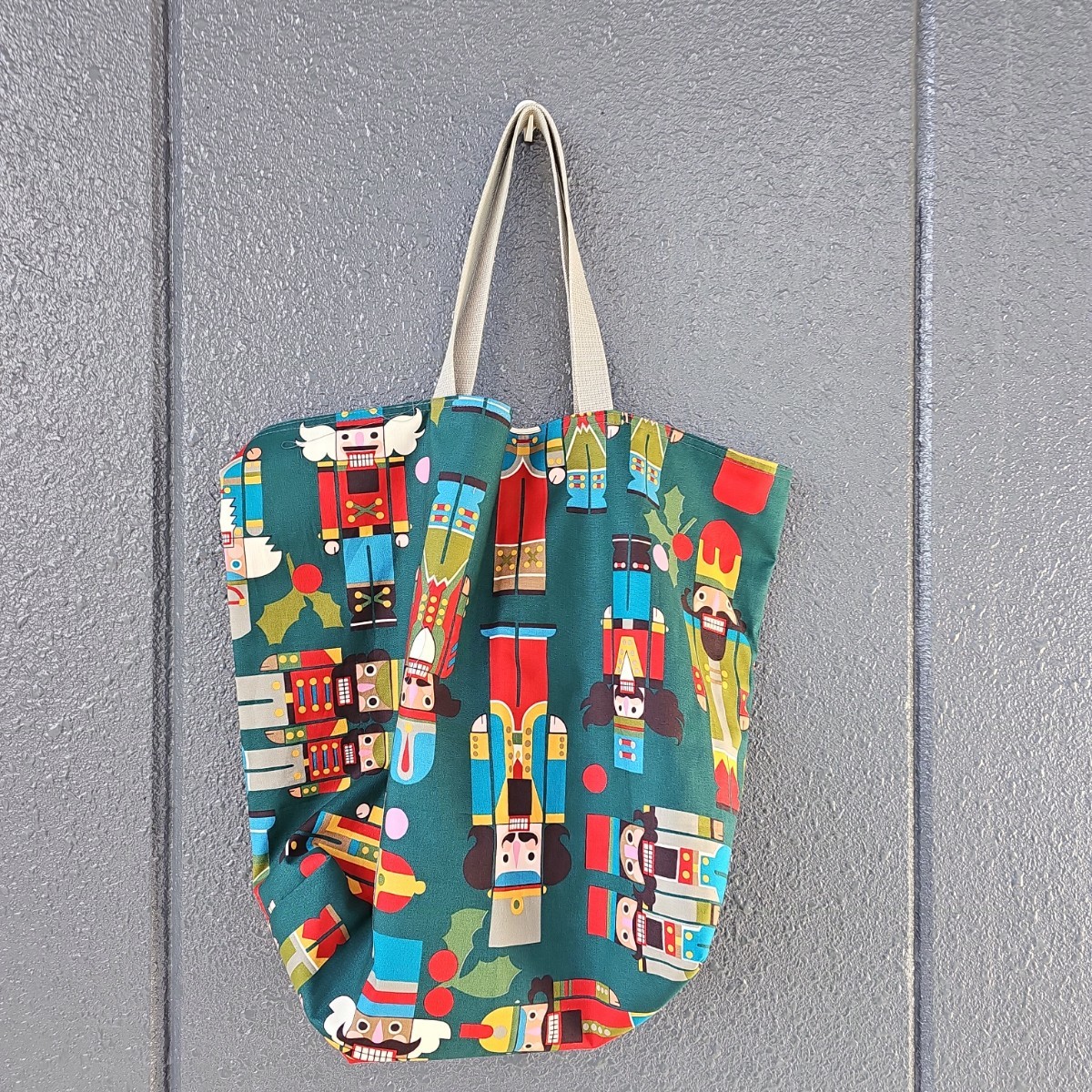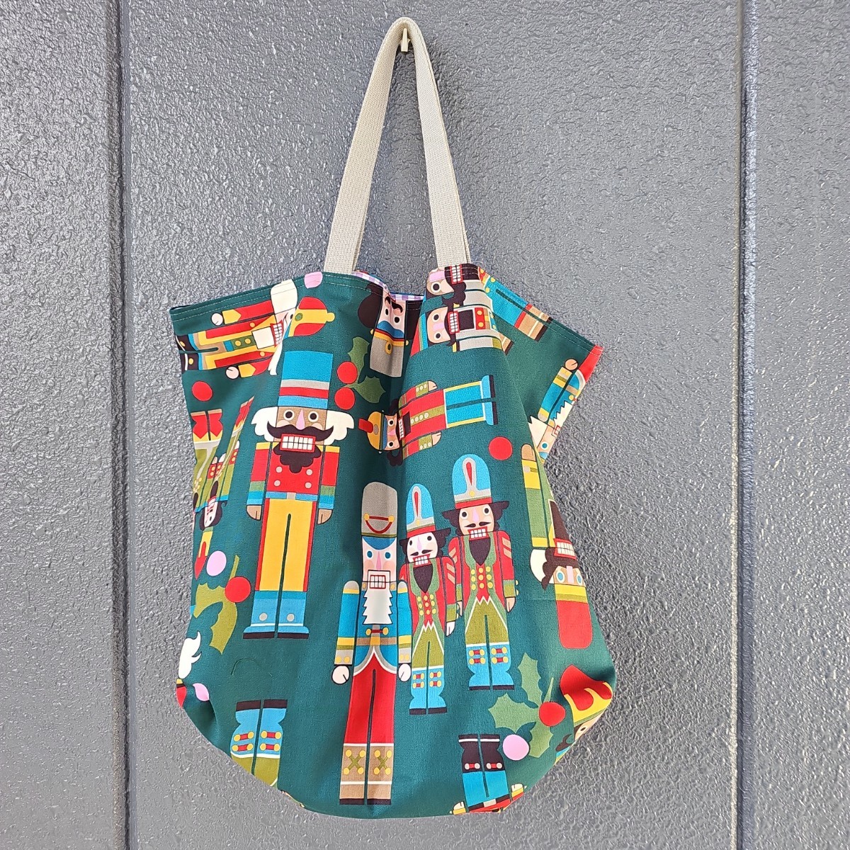 サイズは、高さ40cm、横 上部54cm、底部38cm、マチ15cm、ヒモ49cmです。