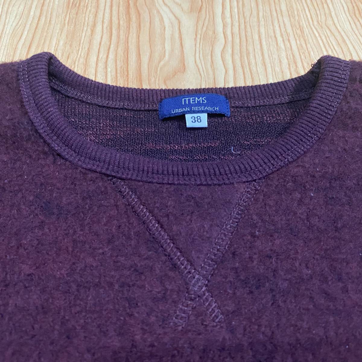 即決・ITEMS URBAN RESEARCHの裏起毛平編みニットの裏使いのセーター・杢ボルドー・38(M)