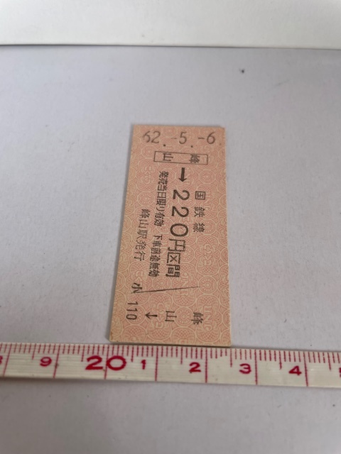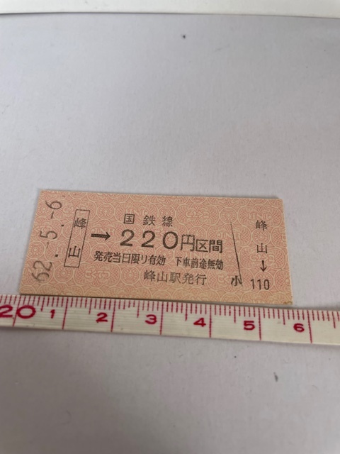 | ◎国鉄線 峰山→220円区間 峰山駅発行 B型 硬券乗車券 S.62 店番-硬券343 | |