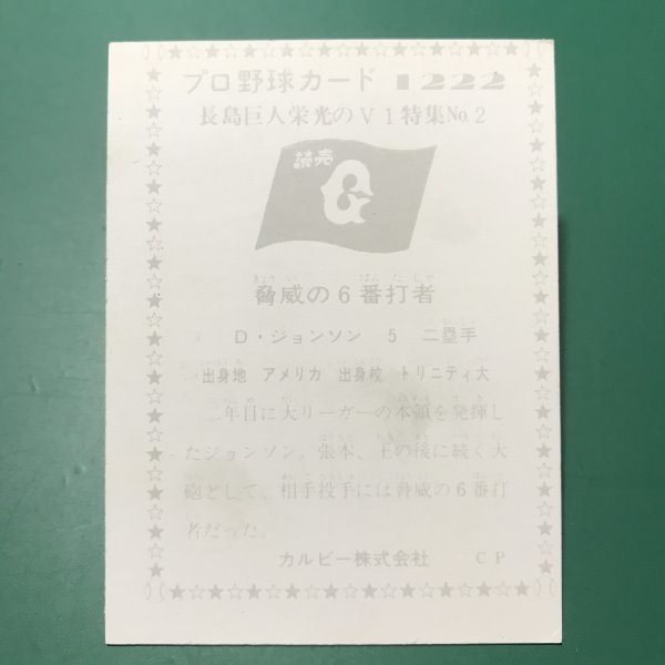1976年 カルビー プロ野球カード 76年 1222番 巨人 ジョンソン  【管C08】