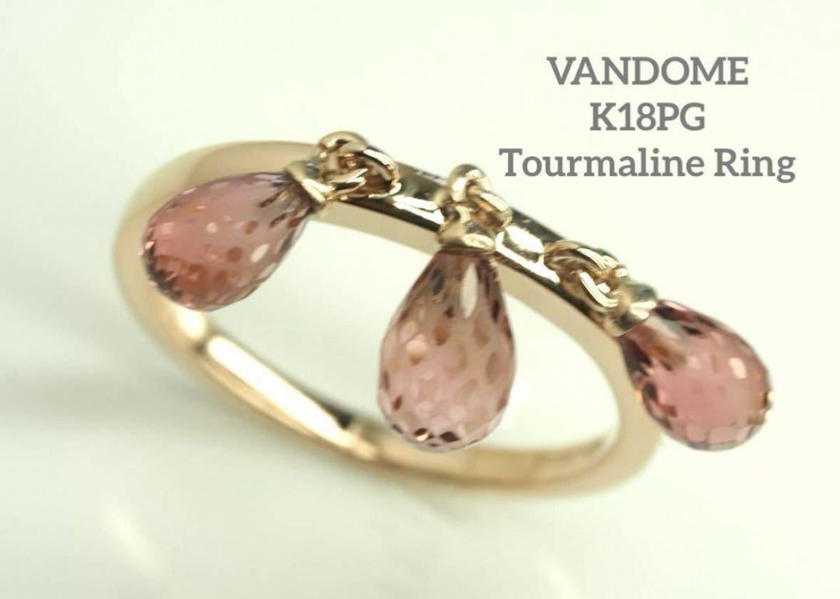 VANDOME☆ヴァンドーム K18YG天然トルマリンマルデザインリング 11号 vvv