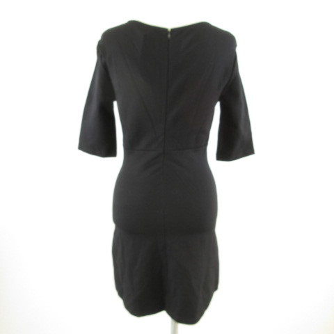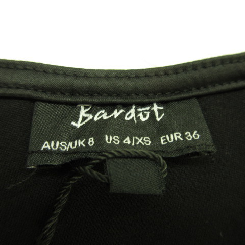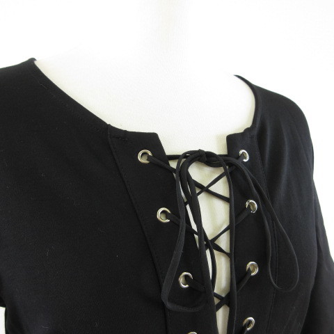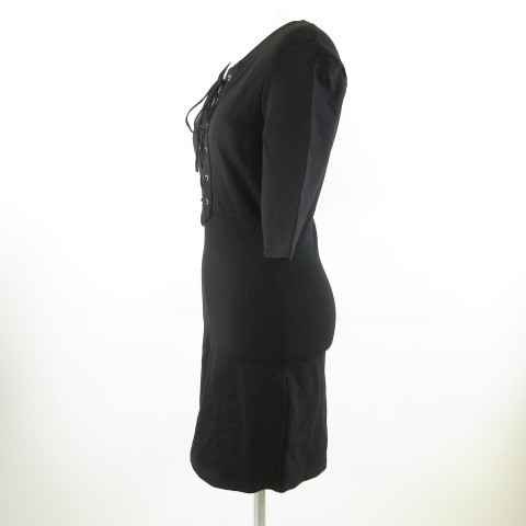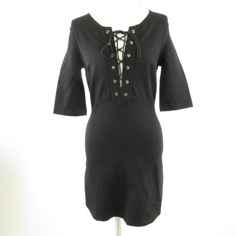 未使用品 Bardot ワンピース ミニ レースアップ 七分袖 ストレッチ 黒 XS *T114 レディース