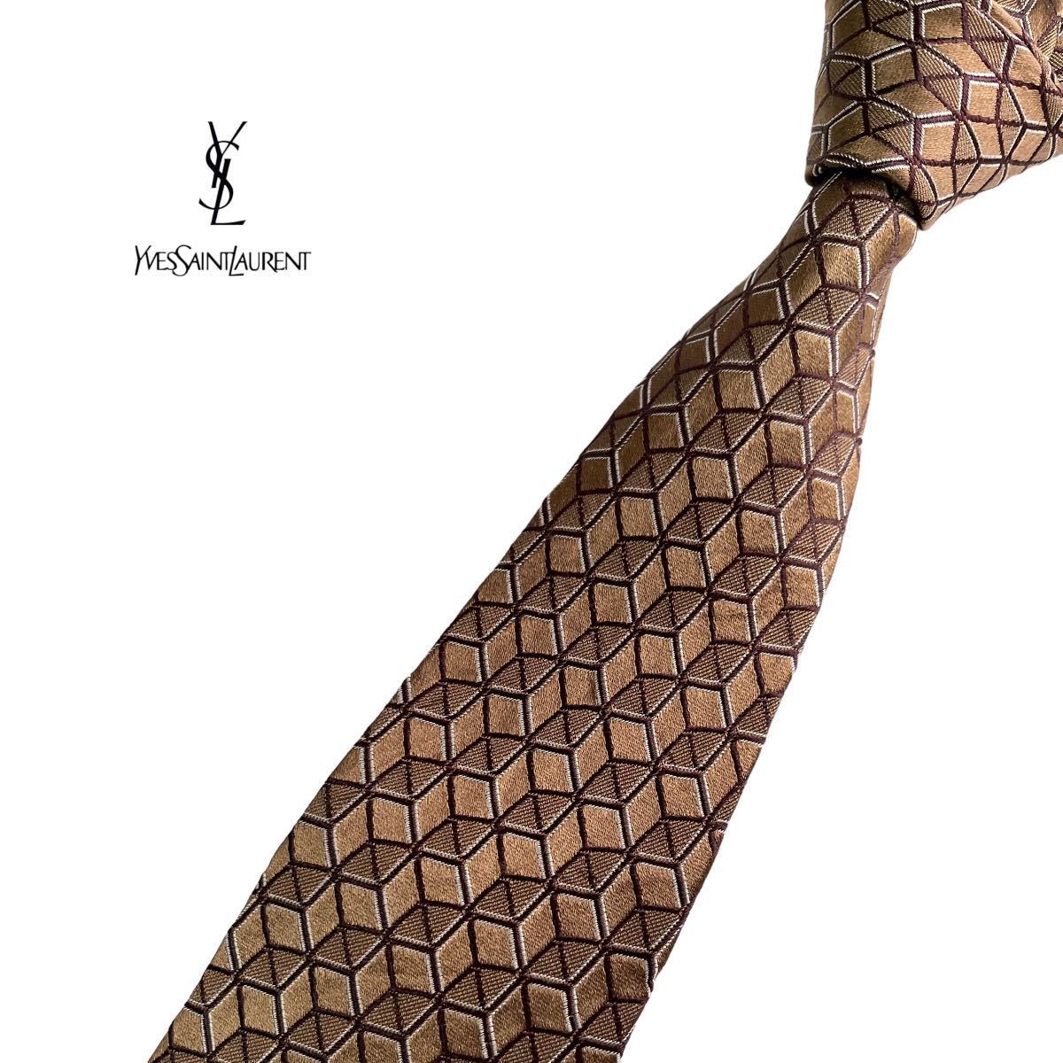YVES SAINT LAURENTネクタイ やや細身 キューブ柄 イヴ・サンローランUSED 中古 m414