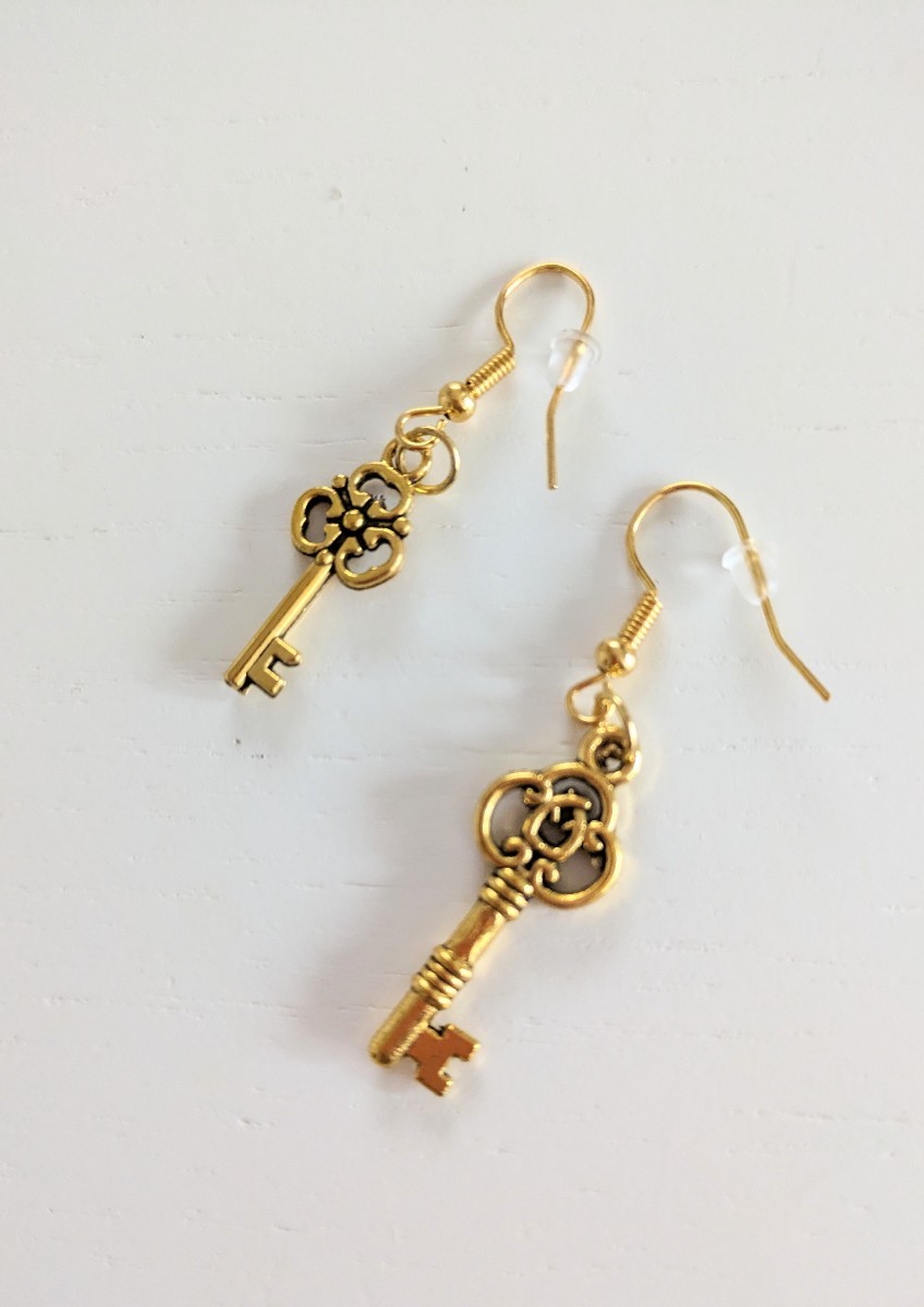 こちらは、新品未使用 三つ葉 ゴールドカラー 鍵型 キーモチーフ フックピアス になります♪