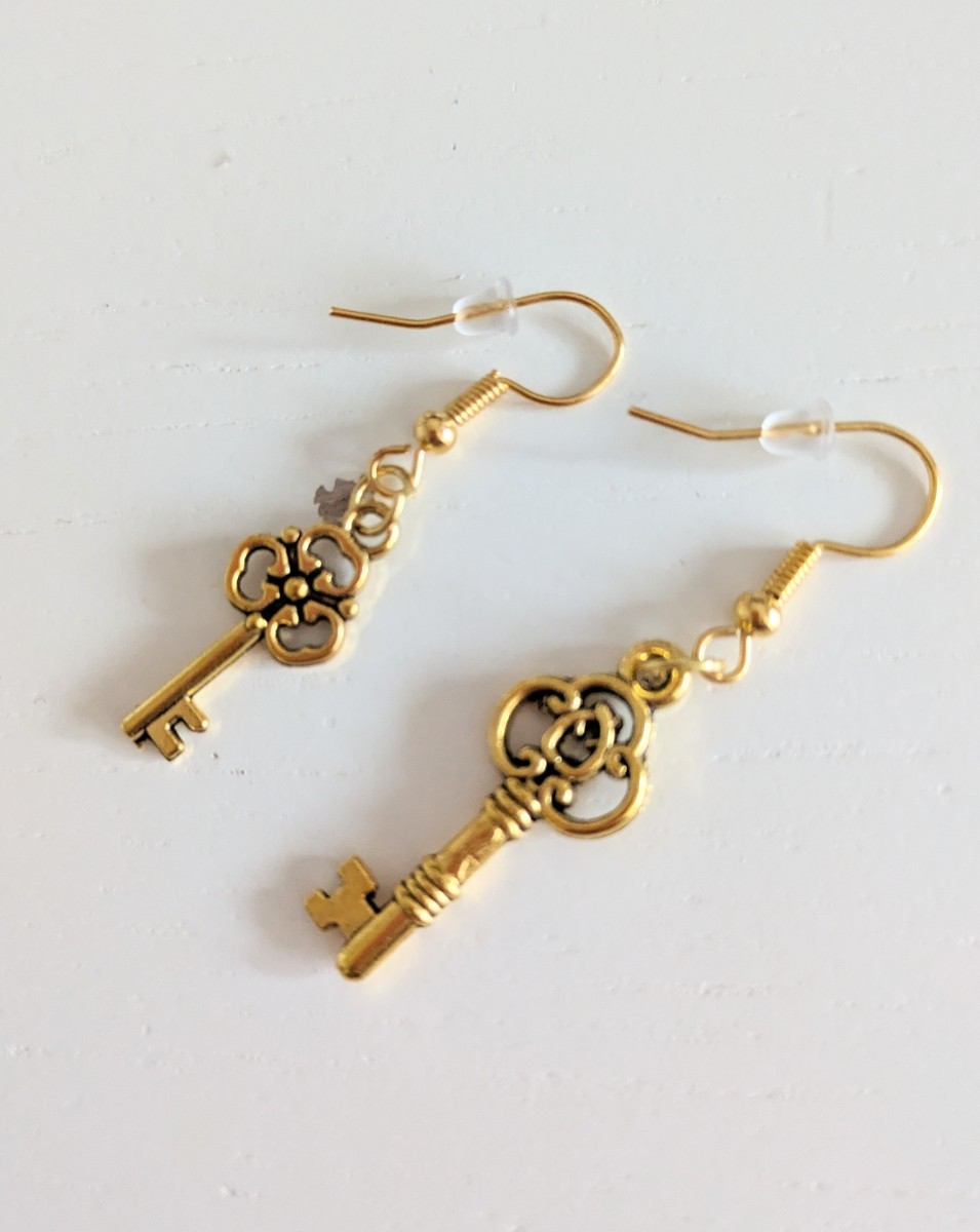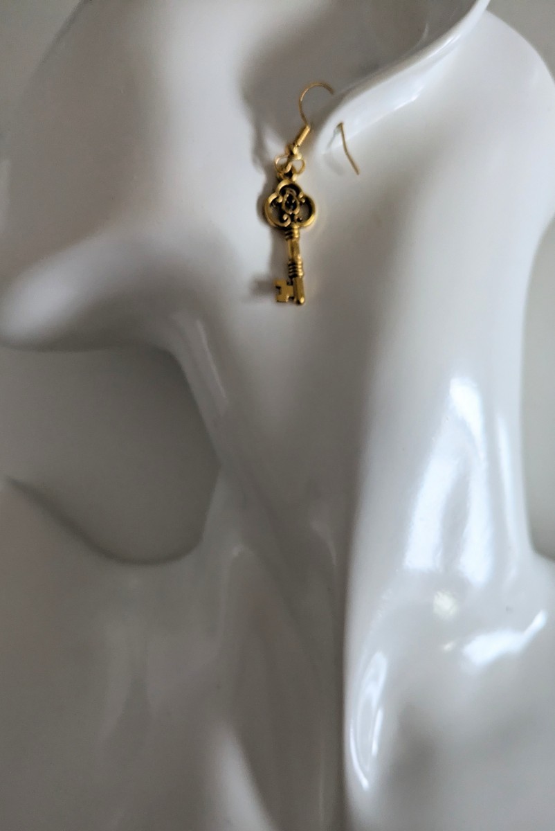 こちらは、新品未使用 三つ葉 ゴールドカラー 鍵型 キーモチーフ フックピアス になります♪