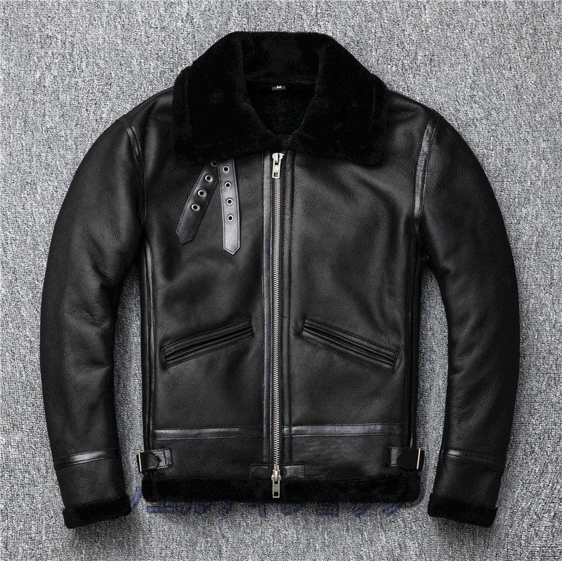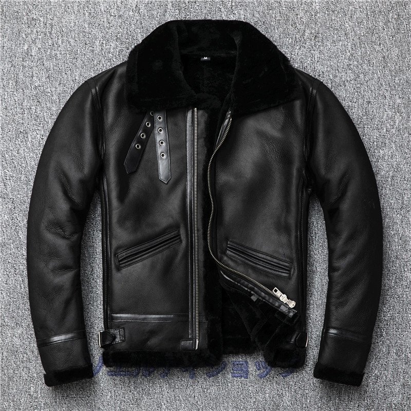 超人気★フライトジャケット ムートン 羊革 シープスキン 毛皮一体 天然革 肉厚 コート メンズファッション 本革 2.5cm 防寒 S~3XL