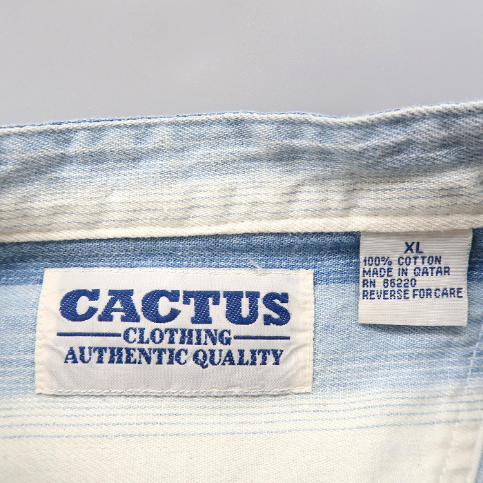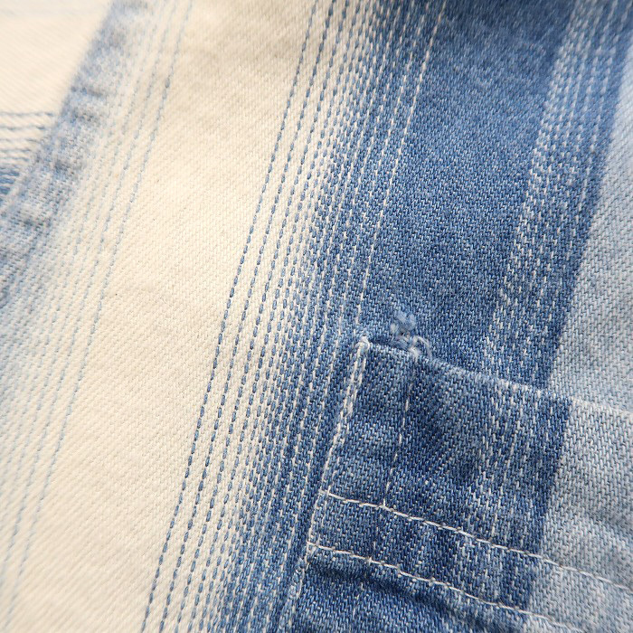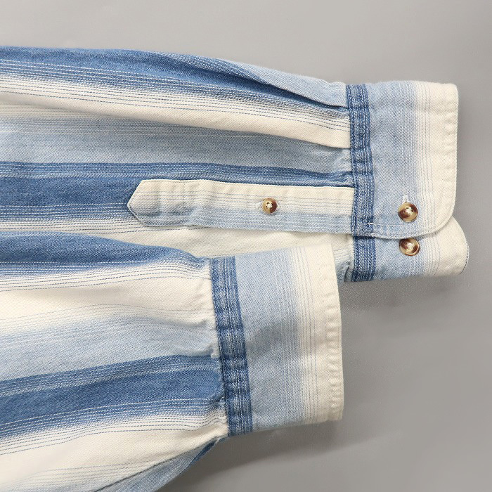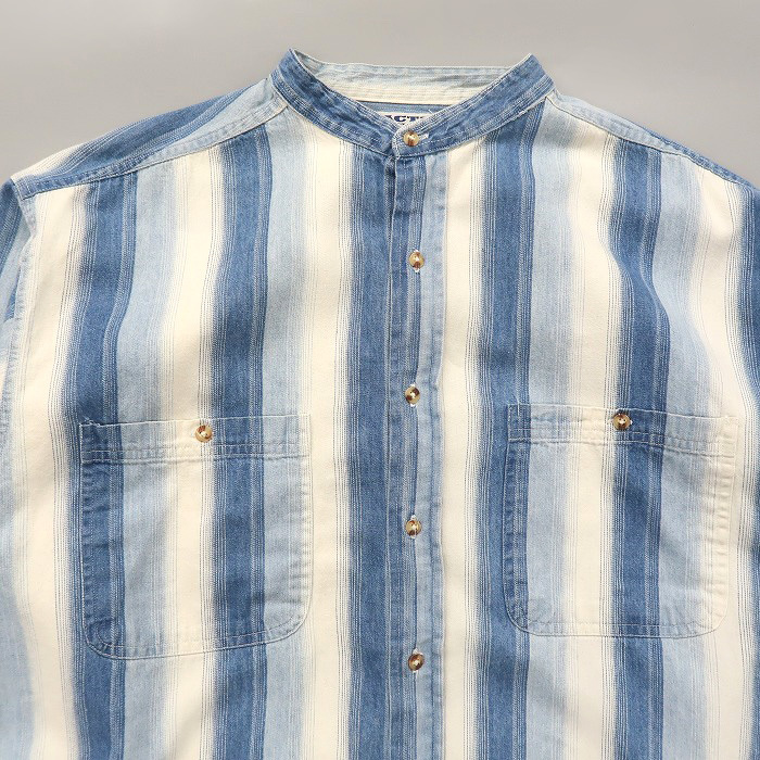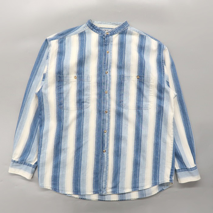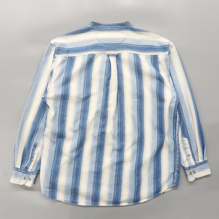 古着 長袖シャツ バンドカラー ストライプ サックスブルー ホワイト サイズ表記:XL gd67340