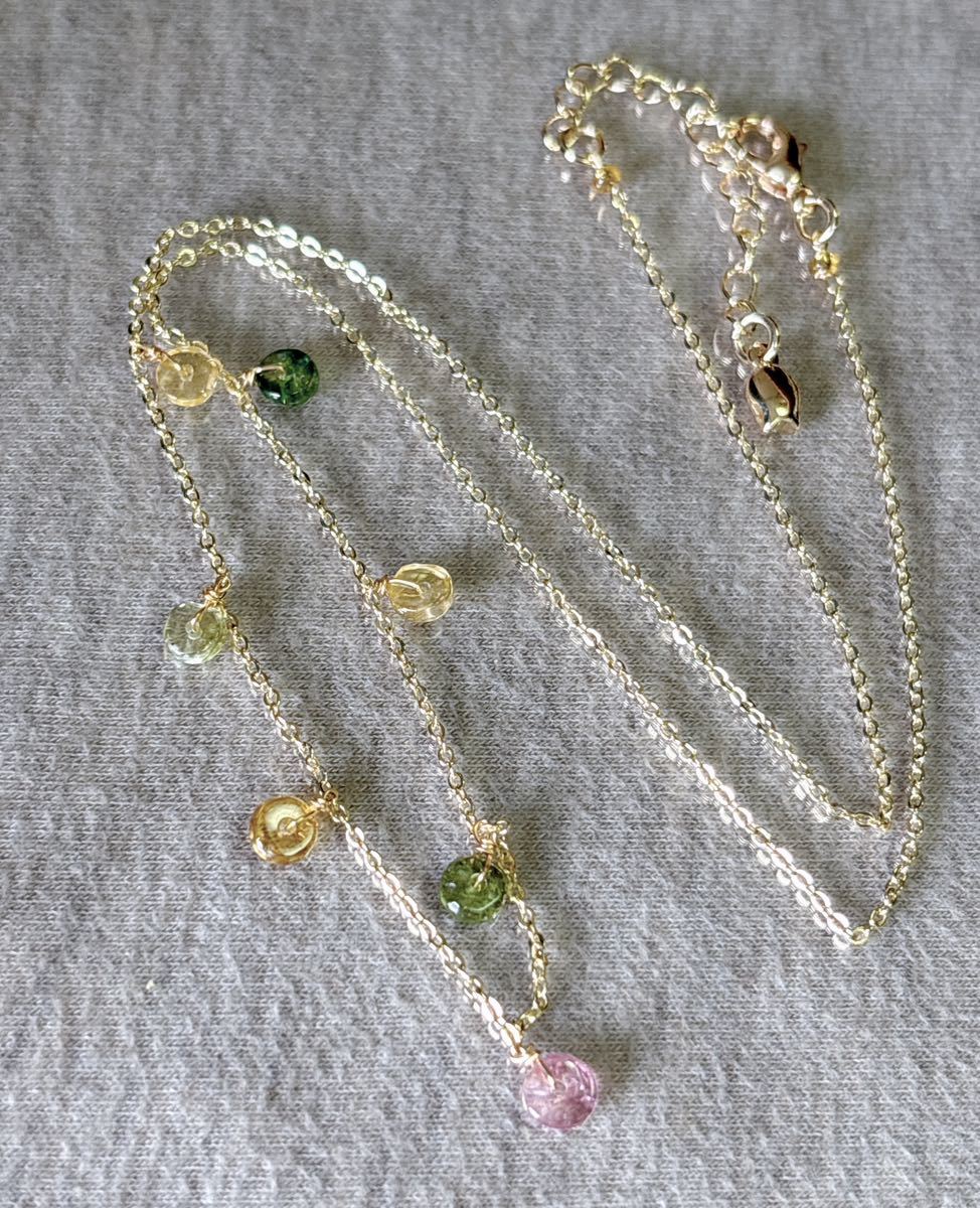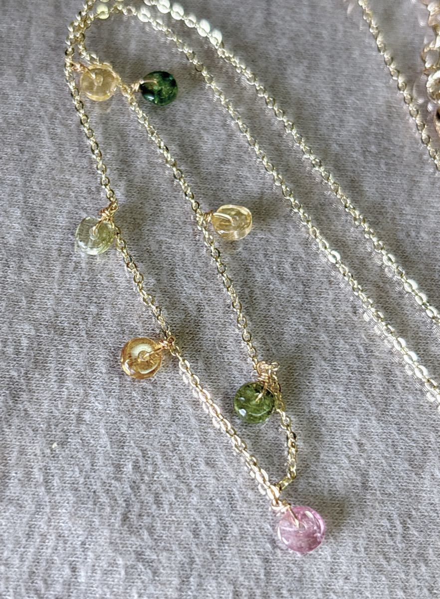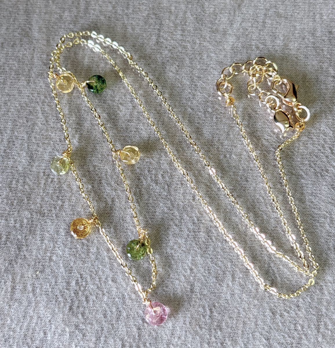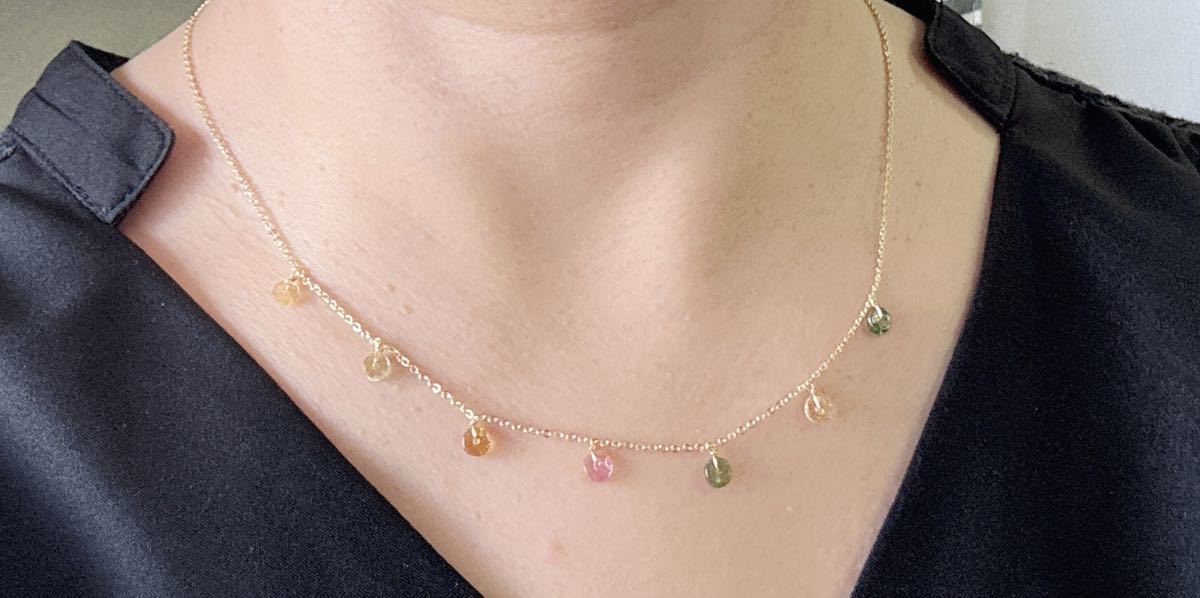 トルマリンには、様々な色彩の他に、もう1つ大きな特徴があります。この石の結晶は柱状をしていますが、両端の性質がプラスとマイナスに異なっており、それによって帯電(電気を帯びる)することです。同じような性質は水晶にも見られますが、トルマリンの方がこの性質が強く、和名では「電気石」と呼ばれています。トルマリン自体が発電したり、電気を通すわけではありません。何もしなければ、ただの石ですが、こすったり(摩擦)熱を加えると帯電し、静電気(マイナスイオン)を発生するといわれています。そのため、トルマリンのこの性質を活かすのであれば、ぜひ肌に直接触れるネックレスとして身に着けることをおすすめ致します。