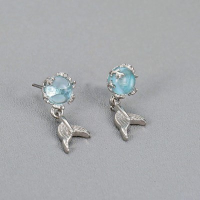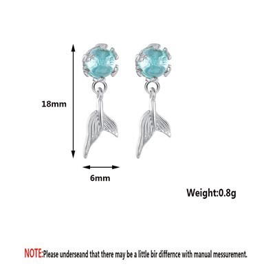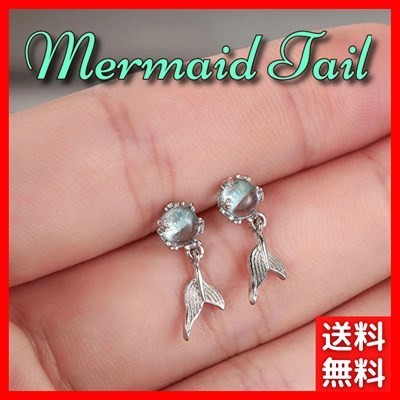 ピアス シルバー マーメイド テイル ブルー クリスタル レディース 韓国 ドロップ 女性 ガール ラインストーン 青 魚の尾 人魚 #C305-5