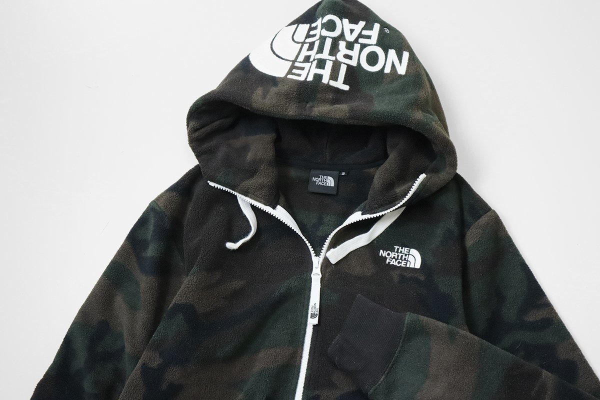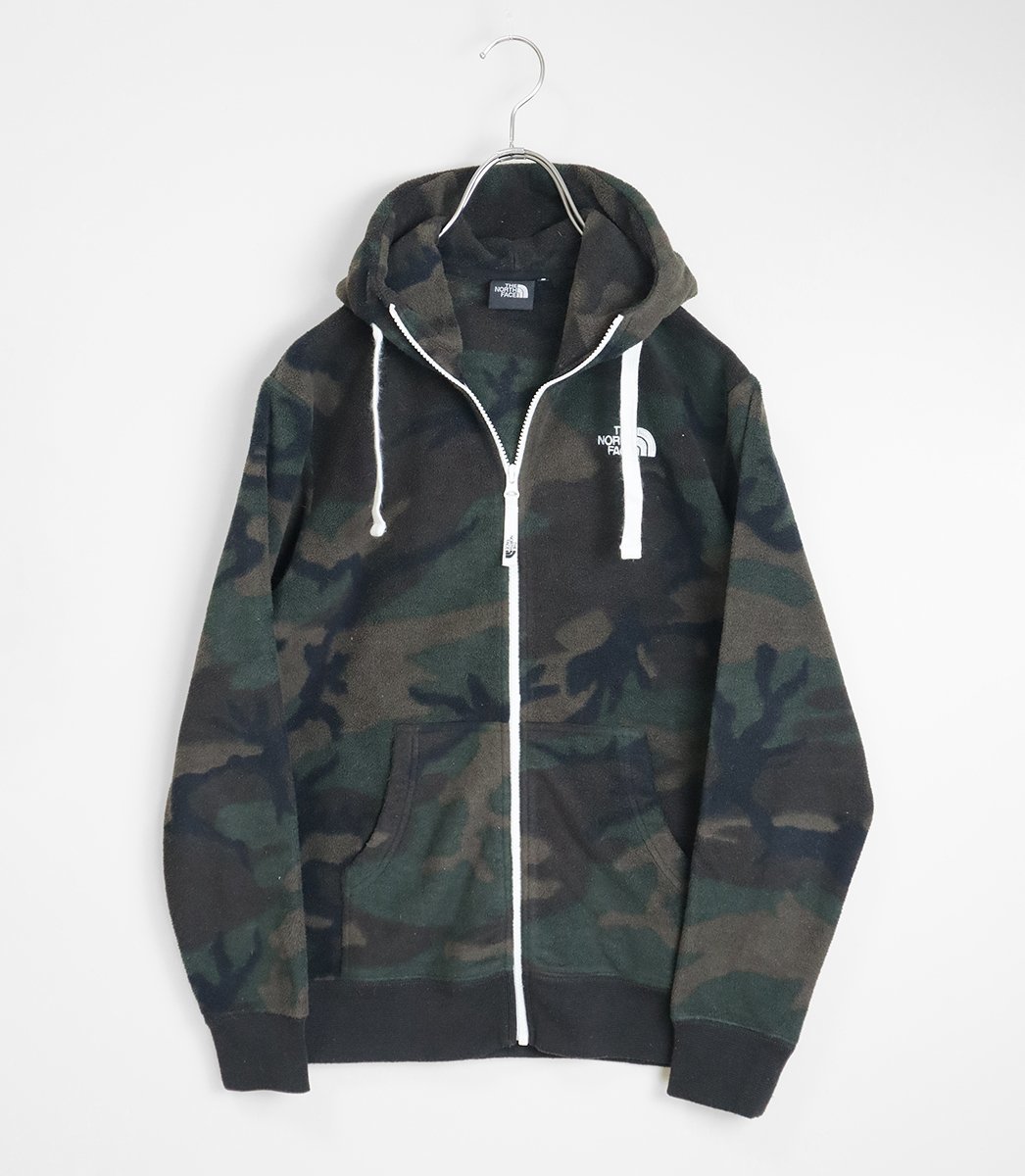 THE NORTH FACE ◆ フリース 迷彩柄 ジップアップ パーカー Sサイズ カーキ (NL71445) カモフラ フーディ ノースフェイス◆K2G