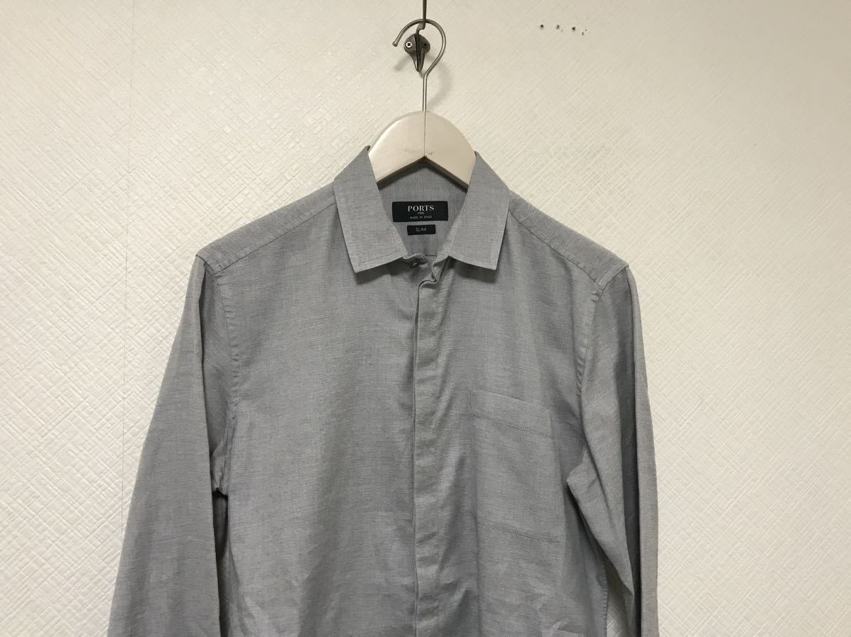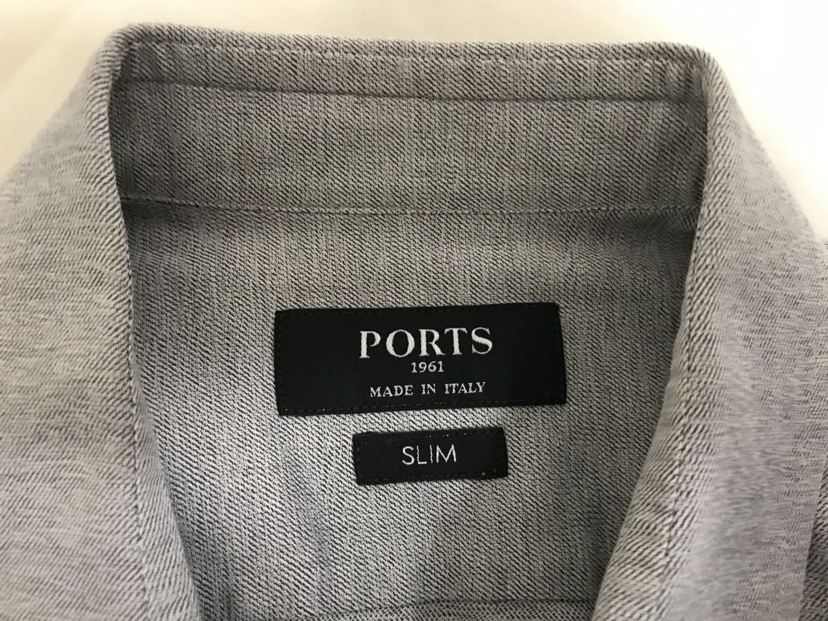 商品名:美品本物ポーツPORTS1961コットンドレス長袖シャツメンズサーフアメカジミリタリービジネススーツゴルフグレーSイタリア製38