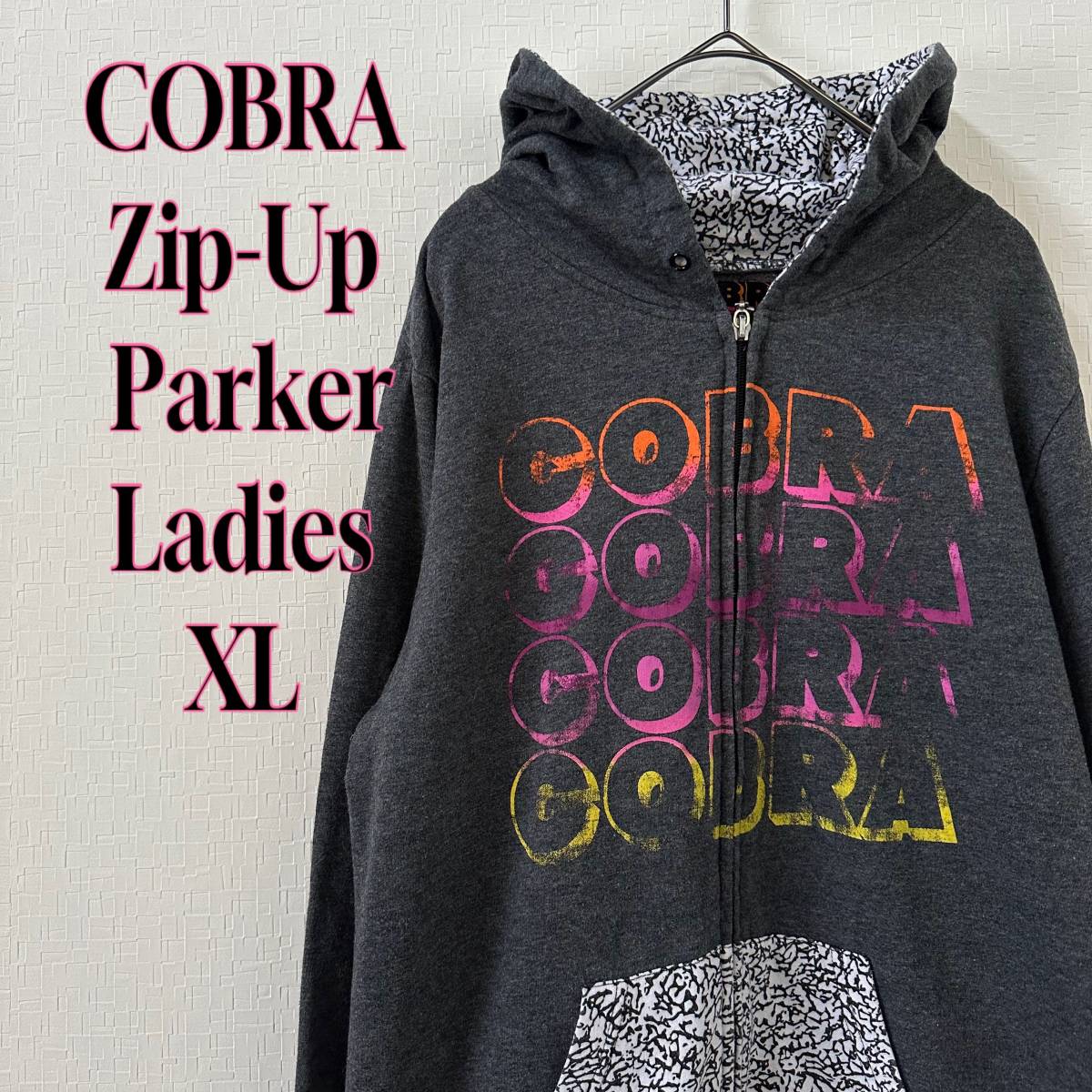 USA古着 COBRA ジップアップパーカー レディース XL バックプリント 可愛い
