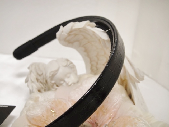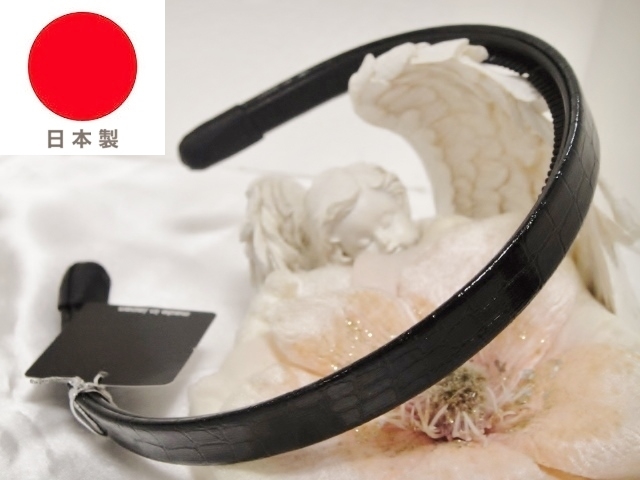 ♪ 新品 カチューシャ 日本製『高品質/頭が痛くならない/合皮/クロコダイル柄/細/平/ブラック/黒』♪
