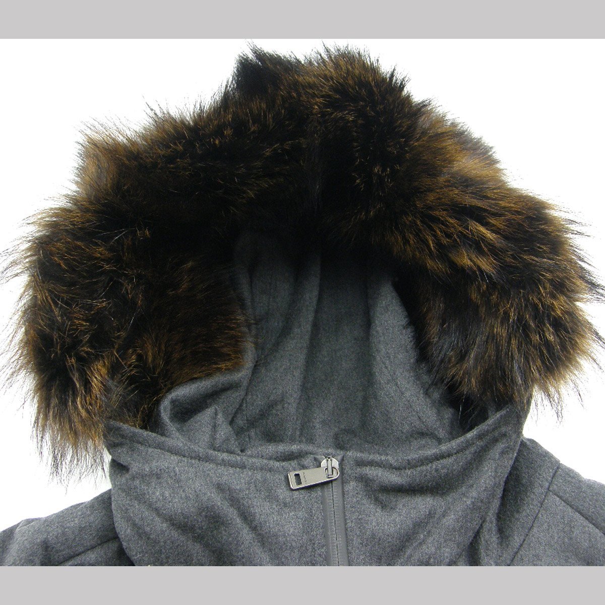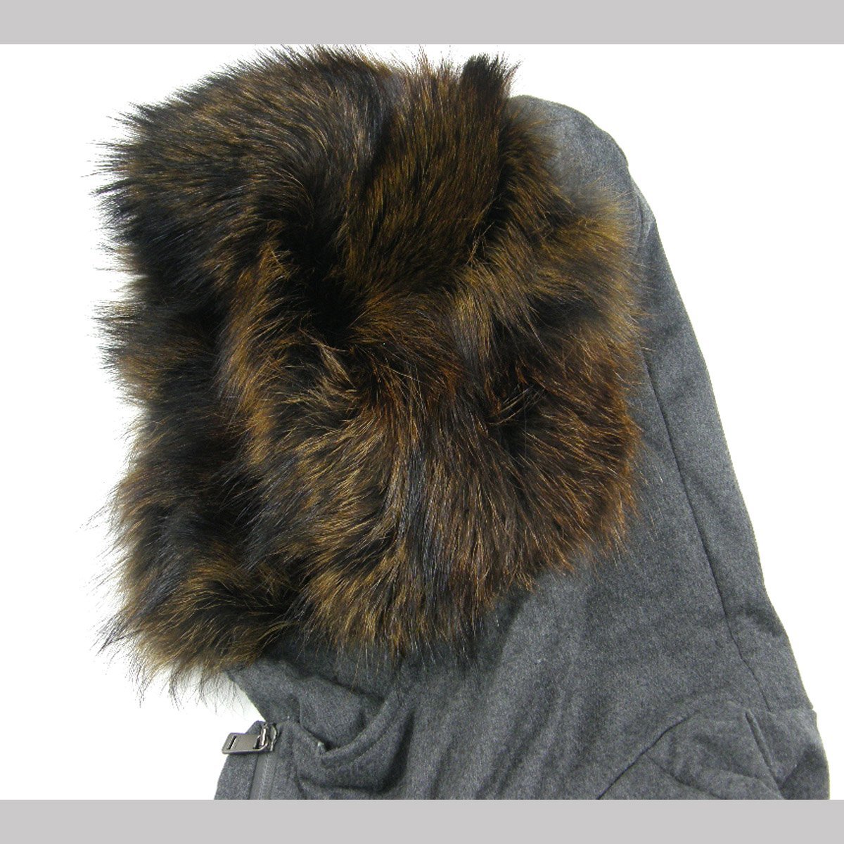 ・表地=ウール90% カシミヤ5% ナイロン4% ポリウレタン1% ・中わた=ポリエステル100%(全面) ・毛皮=アライグマ ・裏地=ポリエステル100% ともて暖かい秋冬ブルゾン |