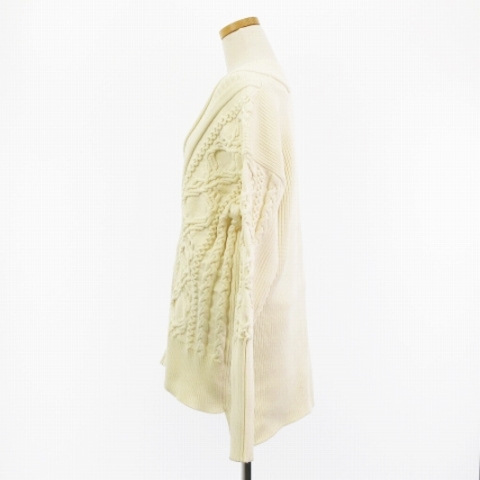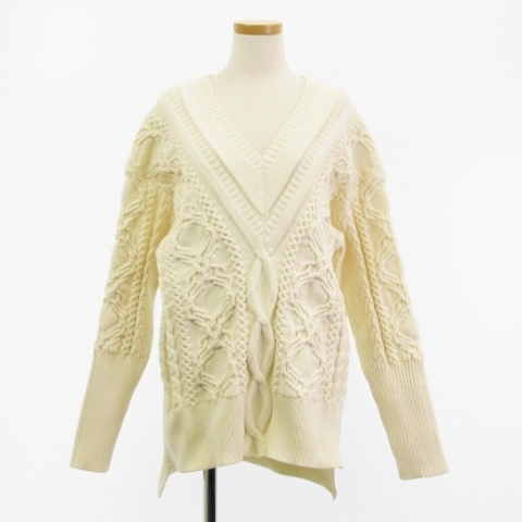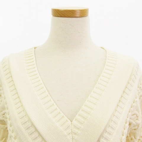 エレストリオフ ELE STOLYOF ケーブル ニット セーター 長袖 Vネック プルオーバー アイボリー 38 トップス レディース