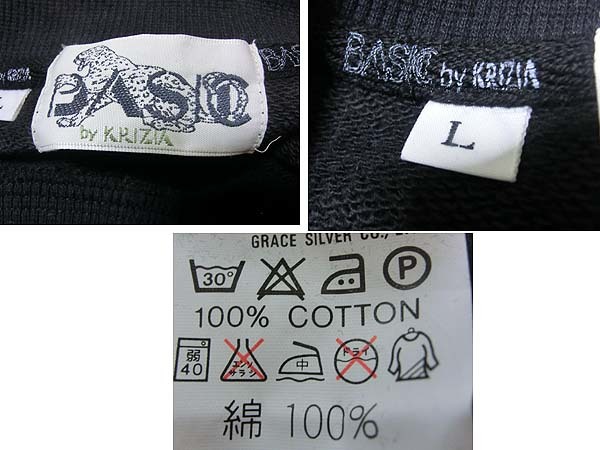 | ■BASIC by KRIZIA ベーシック バイ クリツィア 刺繍ロゴ トレーナー L 綿100% 大き目 ゆったり目 黒 中古 | |