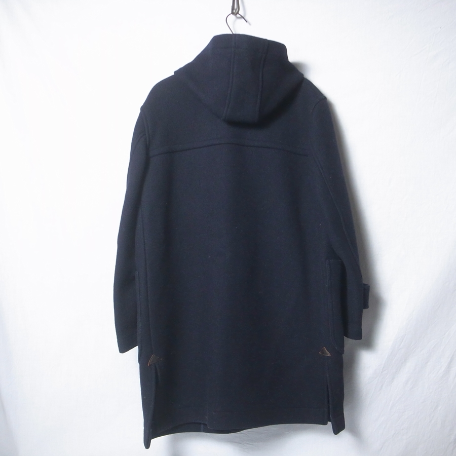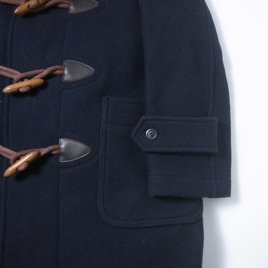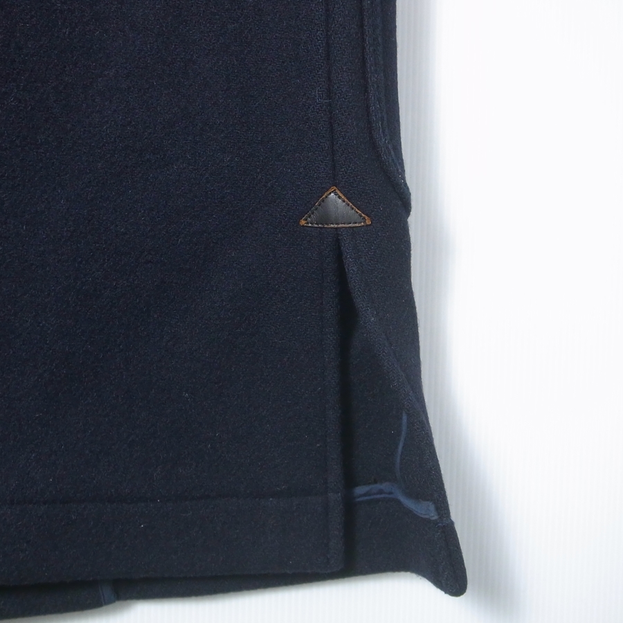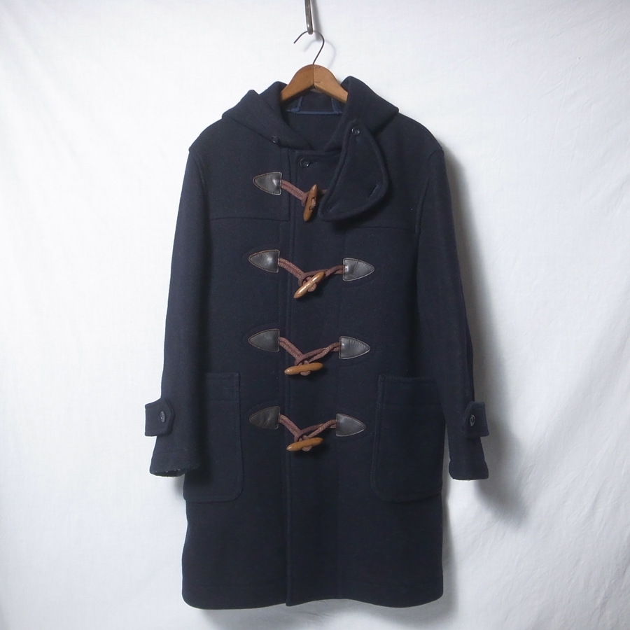 ヴァンヂャケットのダッフルコートになります。トグルの紐止め部分や裾のサイドベント部分にはレザーが使われた手の込んだ作りになっています。素材は毛90%、ナイロン10%でカラーは濃紺です。
