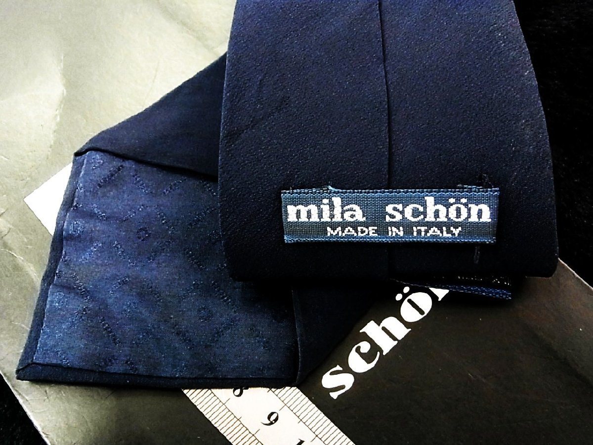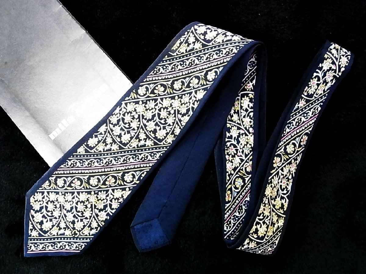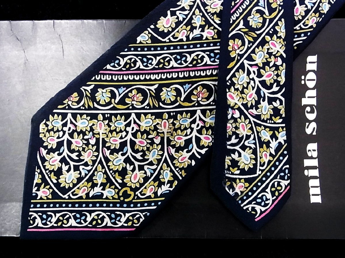 ♪今週の特売980円~♪0601W♪状態並品 【mila schon】ミラショーン【花 植物 ロゴ入 柄】ネクタイ♪