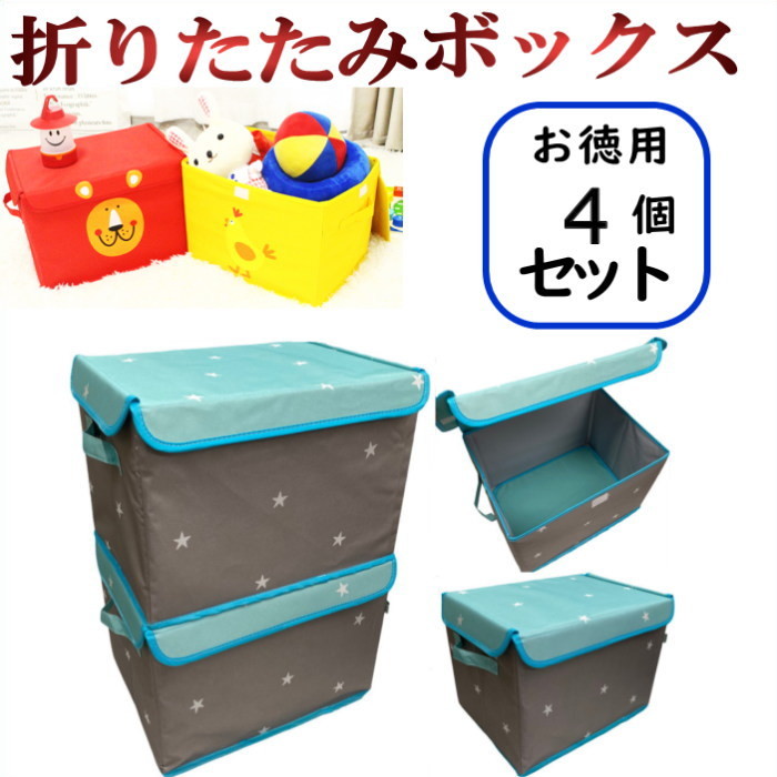 4個セット おもちゃ 収納 ボックス グレー ブルー 布 星【cy22c2】フタ付き おもちゃ箱 おもちゃ収納 折りたたみ 取っ手付き 衣類収納