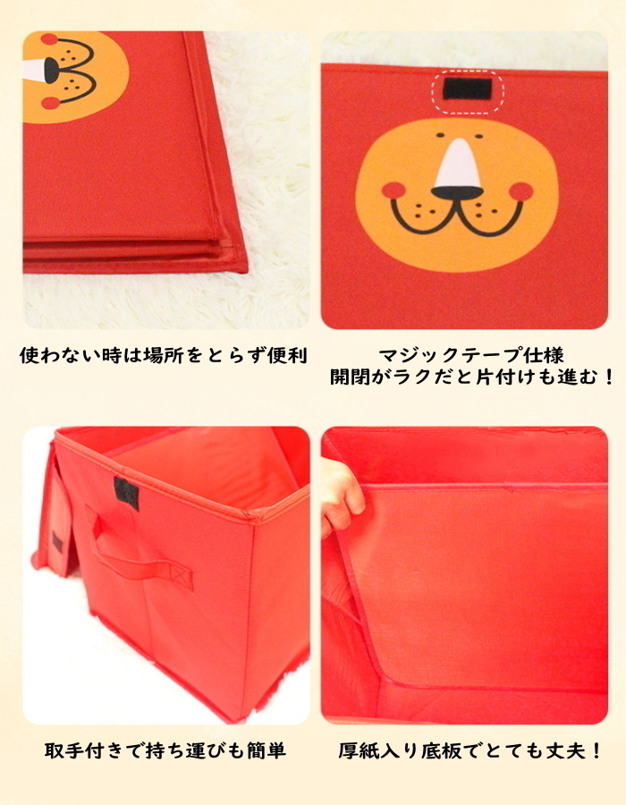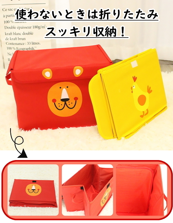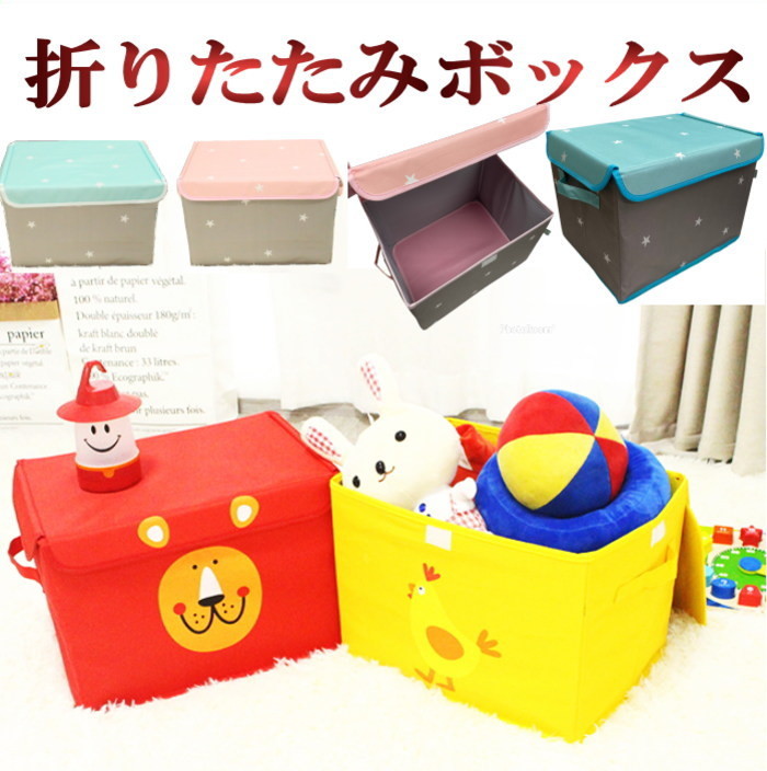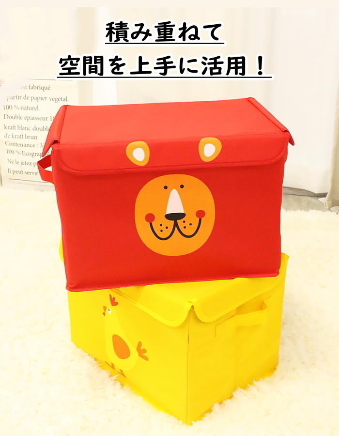 増えて散らかりがちな子どものおもちゃを収納ボックスに入れてお片づけ。