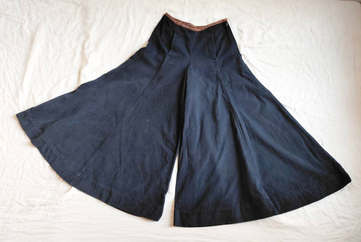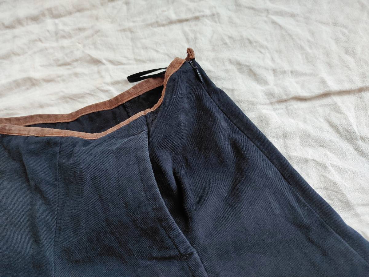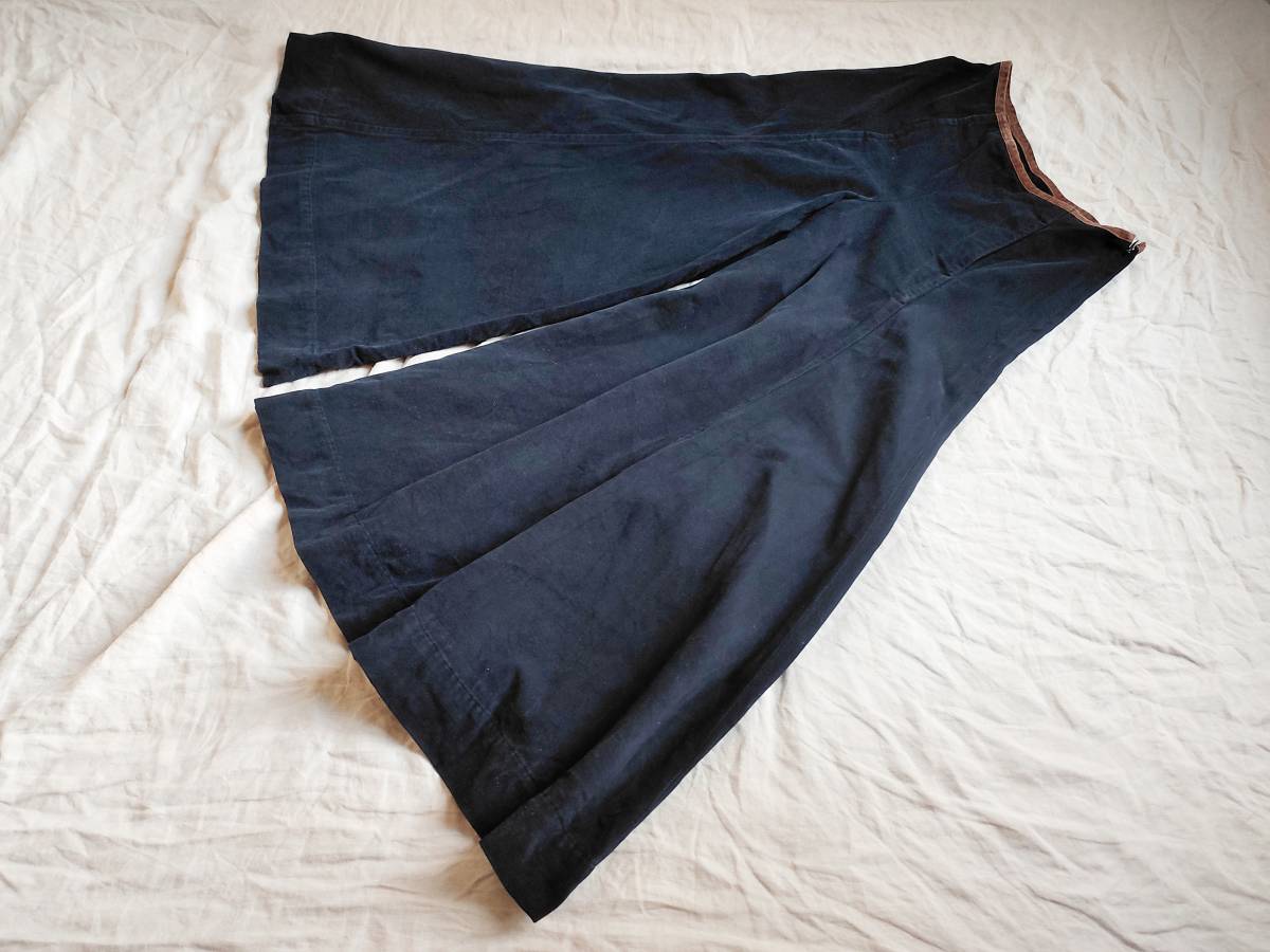 90’S ビンテージ RALPH LAUREN ラルフローレン パンツ ワイド フレア ブーツカット チノツイル コットン レザー切替 紺 7 レディース ★11