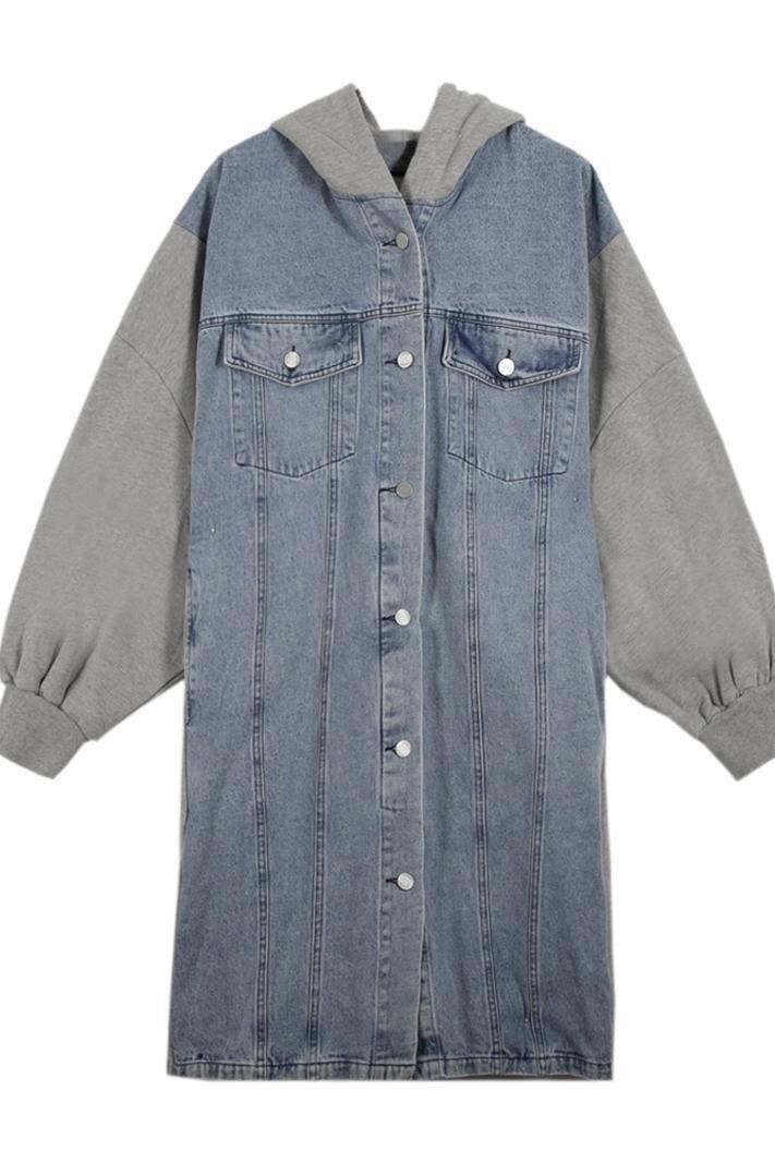 デニムコート ジャケット ロングコート レディース フード付き アウター トップス 長袖 春秋 ゆったり LCCA005(S-XL)