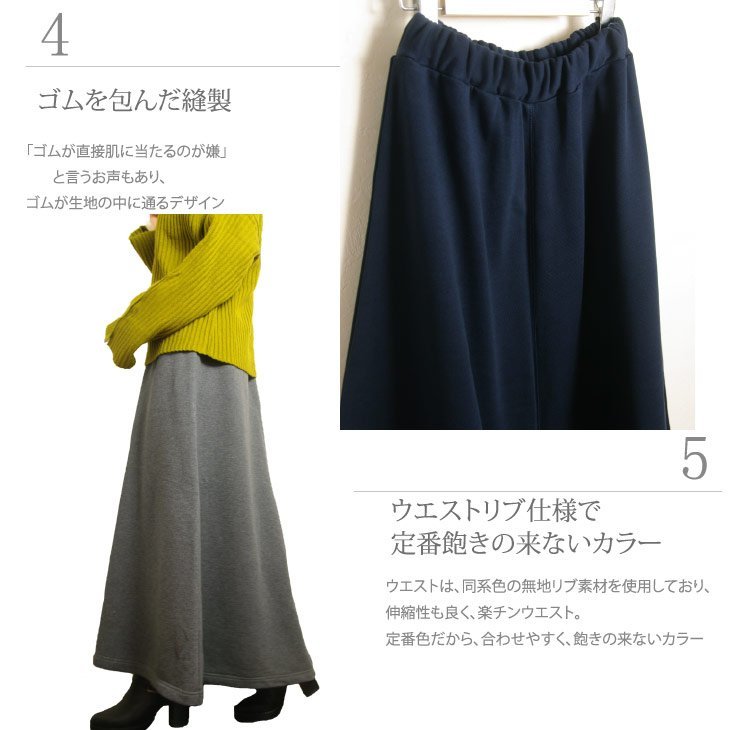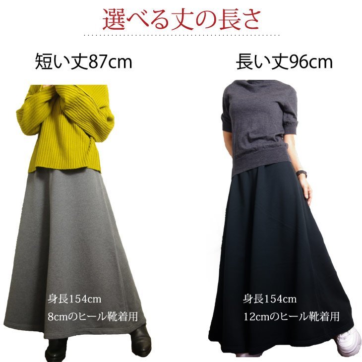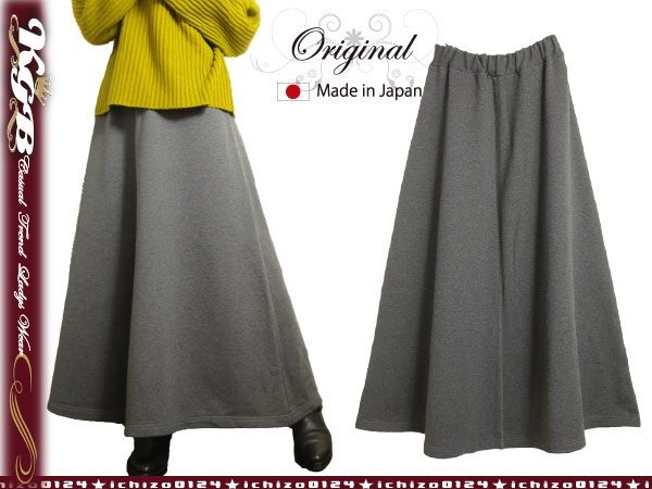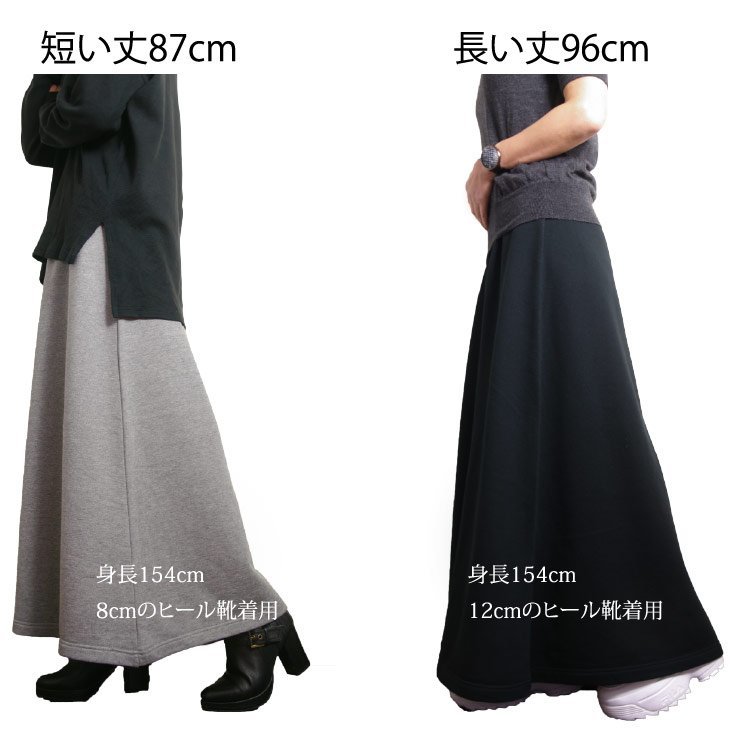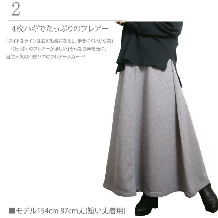 スカート ロング丈 レディース 日本製 綿 フレアー スウェット 裏毛 マキシスカート M 長い丈96cm チャコールグレー 新品