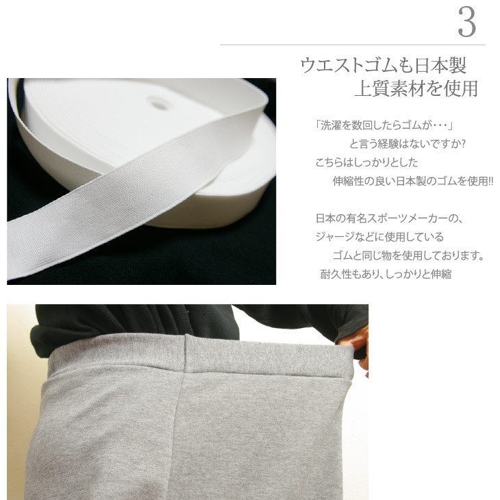 日本の有名スポーツメーカーの、ジャージなどに使用しているゴムと同じ物を使用しております。