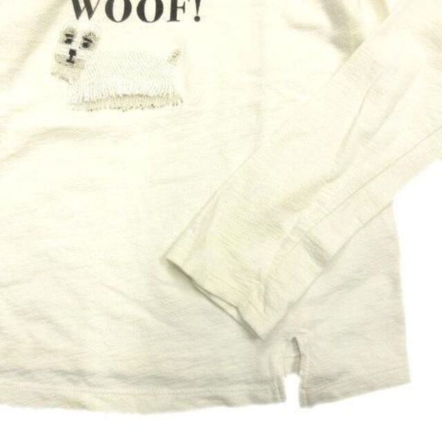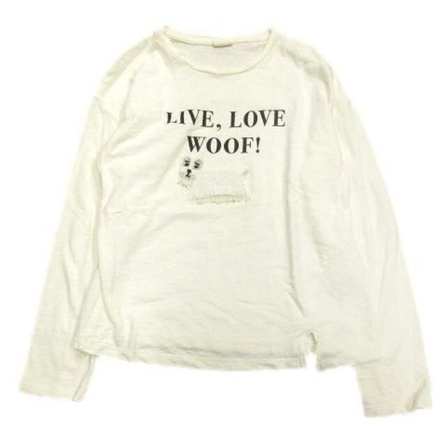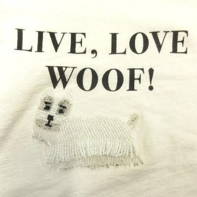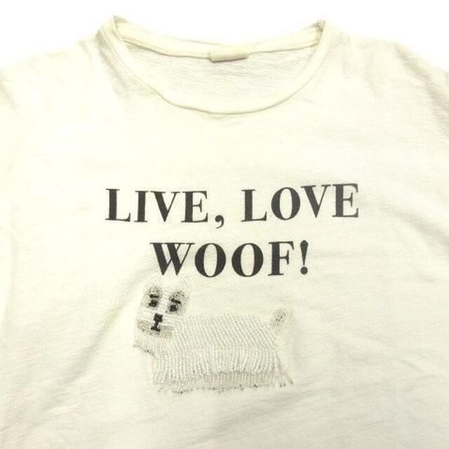 仕様胸に英字と犬のビーズ刺繍がデザインされた薄手のTシャツです。