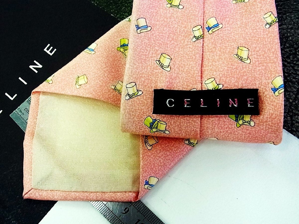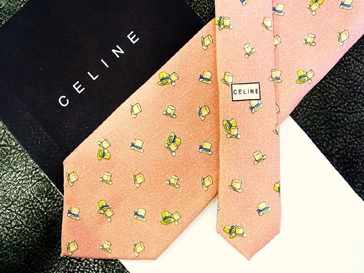 ♪vr0076♪良品♪【CELINE】セリーヌ【帽子 シルクハット 柄】ネクタイ