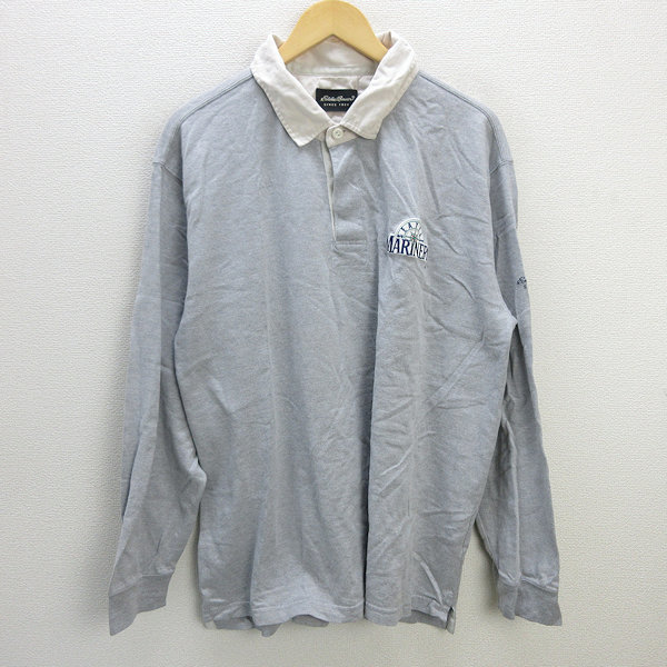 k■エディー・バウアー/Eddie Bauer シアトルマリナーズ 長袖ポロシャツ【XL】灰色/MENS■20【中古】