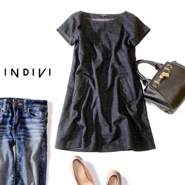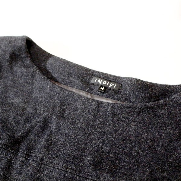 ☆☆ 美品 INDIVI インディヴィ ☆☆ 上品綺麗め フラノストレッチ アンゴラ・ウール ワンピース 38号 M 秋 冬 23B12