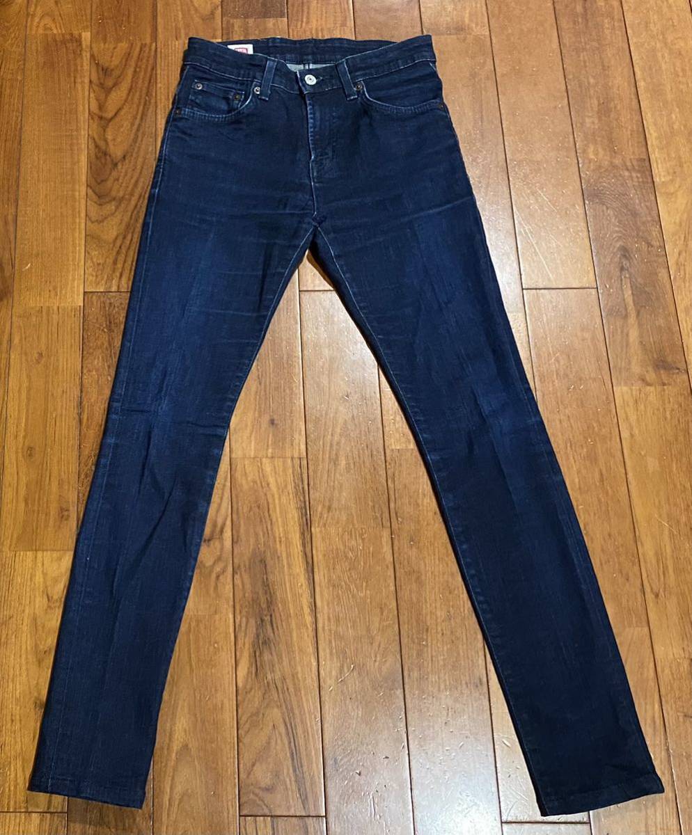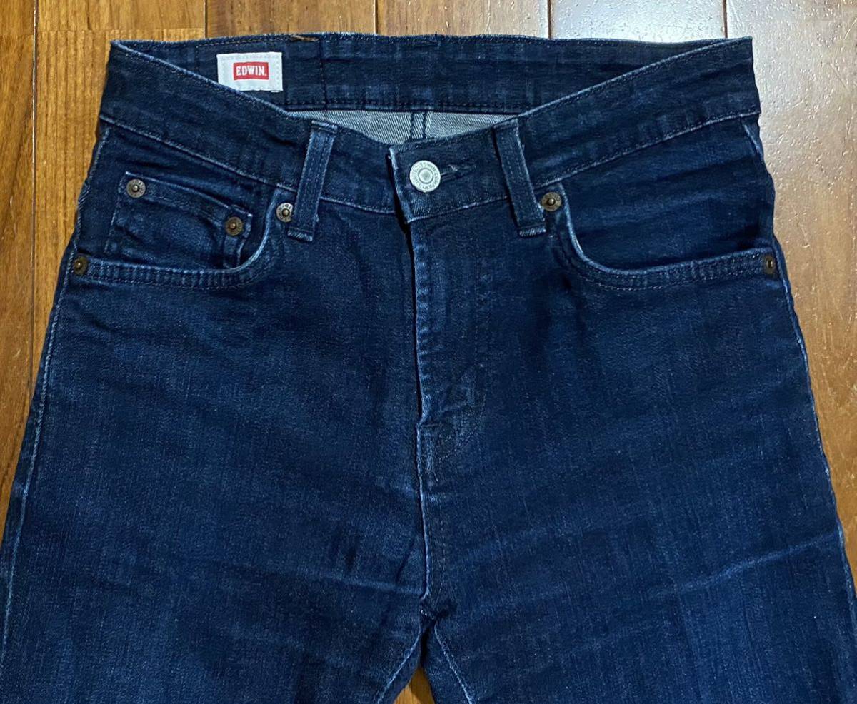 エドウィンのストレッチスキニーデニム(ジーンズ)、No.E5036Rです。色はインディゴブルーです。USEDですが状態は良いです(10段階中8程度)。生地はストレッチ入りで綿98%、ポリウレタン2%です。牛革パッチ、ジッパーフライです。正規品です((株)エドウイン、日本製)。サイズはW27でウエストは重ねずに平置きで約69cm、ヒップ86cm、股上約24cm、股下約73cm、股下15cmのふともも部分約39cm、裾まわり約26cm、重量約450gです。発送はゆうパケットポストになります。