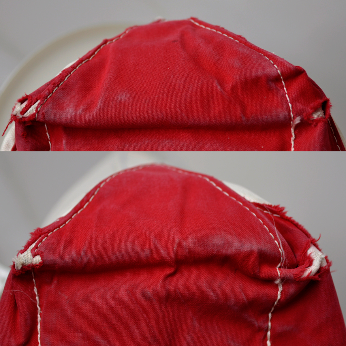 見事なまでのダメージ具合、この状態で3年使ったので、実用は問題無いと思います。