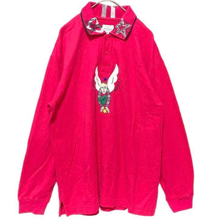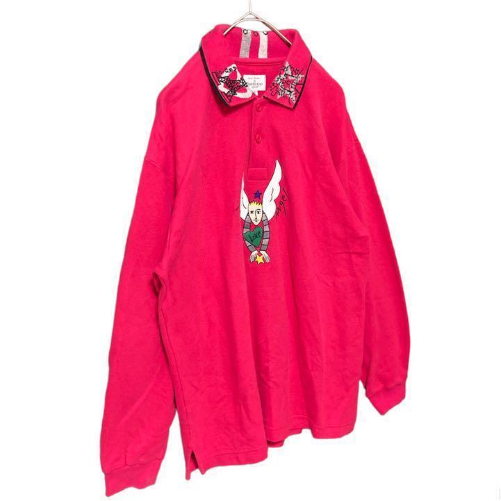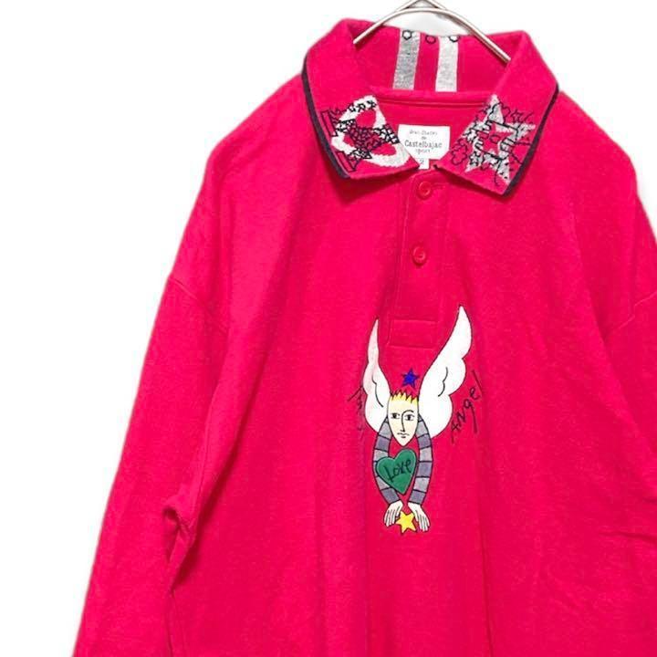 天使の刺繍が施されており、また、襟元、背面もキュートな刺繍が施されています。メンズMサイズ、色もピンクなので、ユニセックスで着ても素敵です。