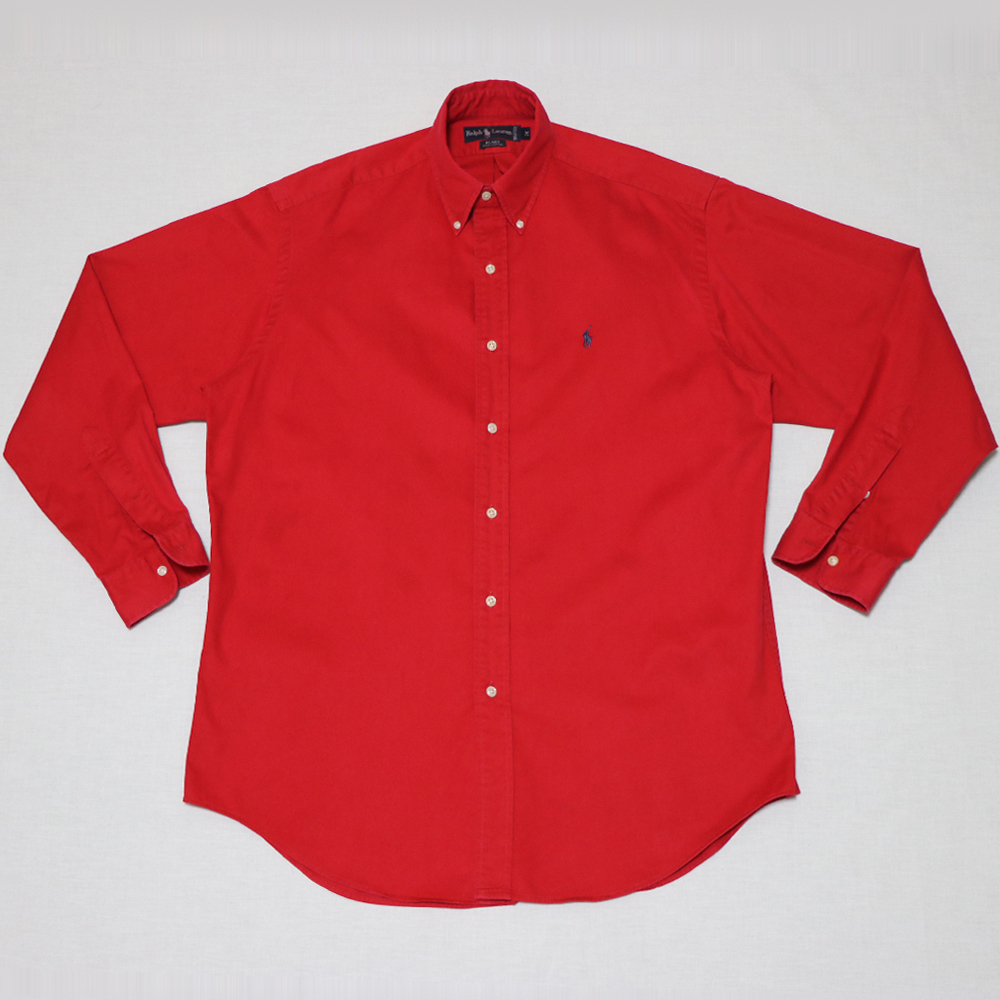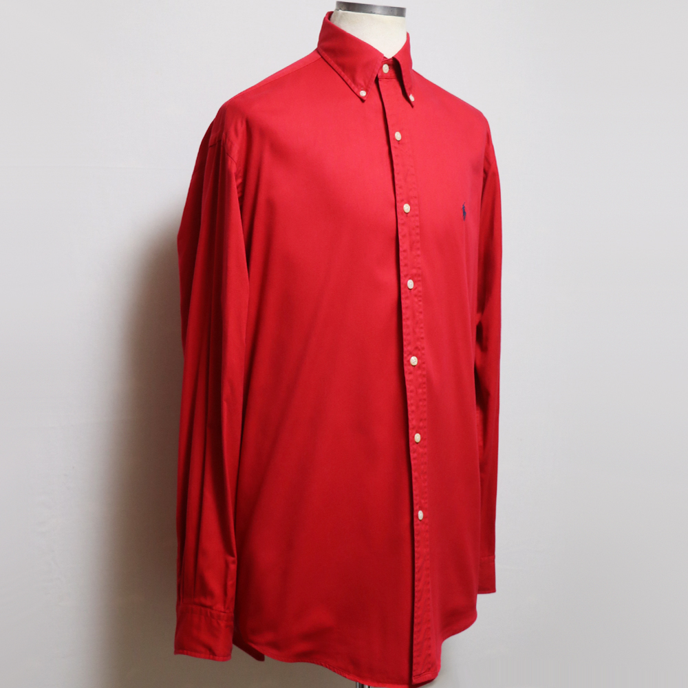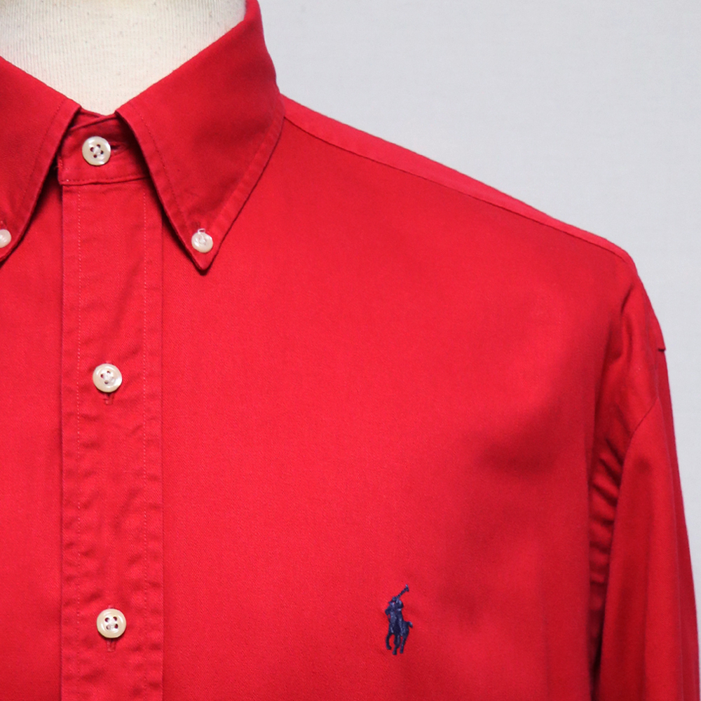 アメリカ購入品 USED品 POLO RALPH LAUREN BLAIRE ポロ ラルフローレン ブライアー ボタンダウンシャツ 赤 青ポニー M サイズです。