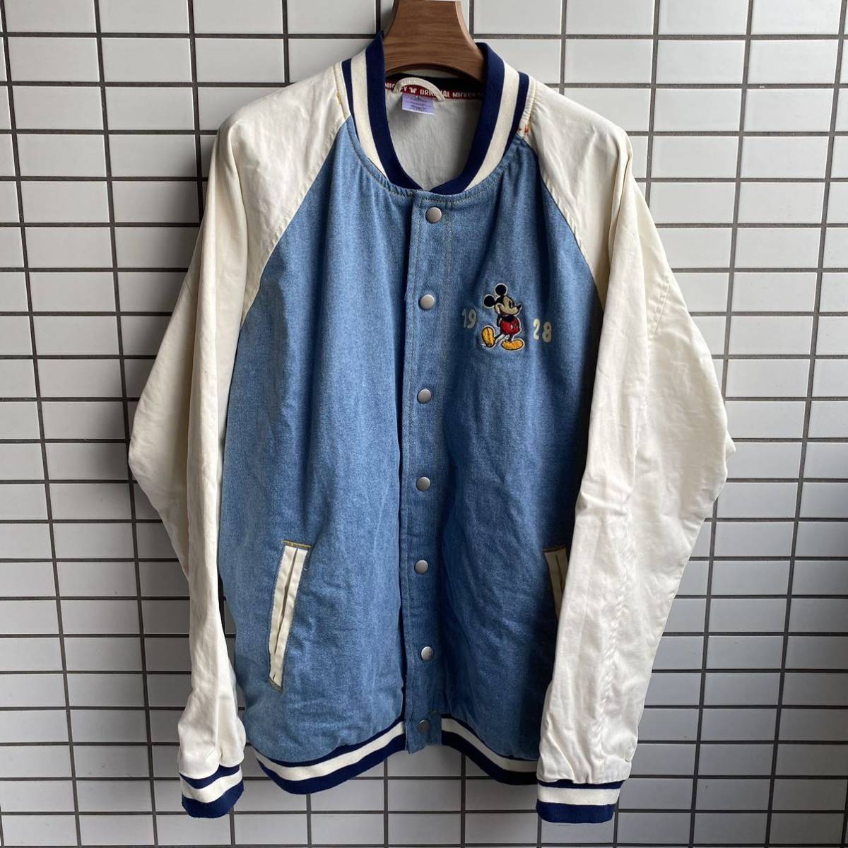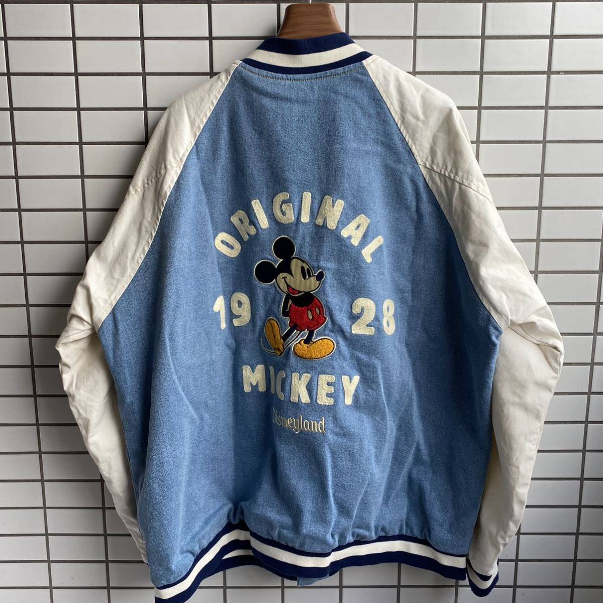 Disney ディズニー original Mickey 1928 ミッキー スタジャン XXL デニム生地 刺繍 ブルゾン ディズニーランド  オーバーサイズ