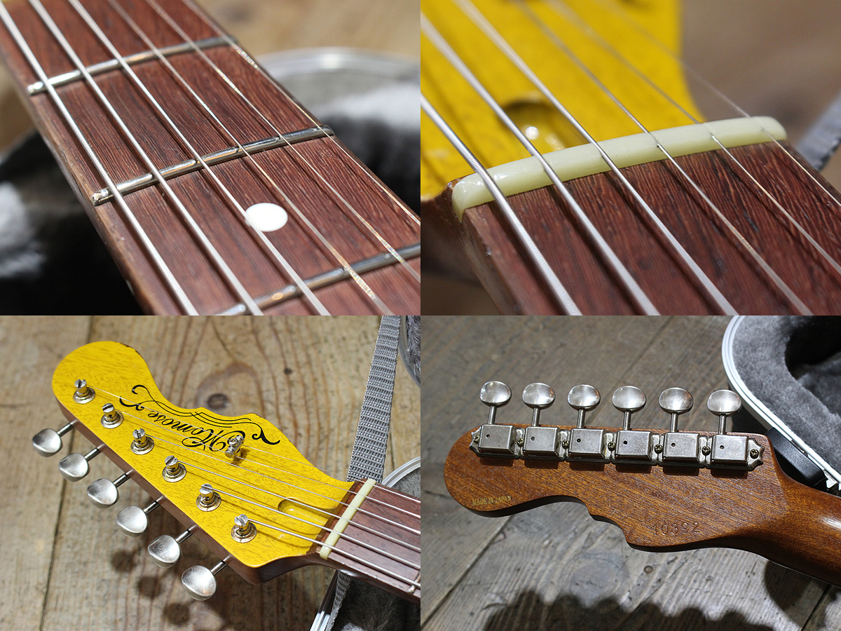 主な仕様 | Color : BBD-Relic Body : Mahogany Neck : Mahogany Fingerboard : Madagascar Rosewood, 8.27"R/ 22frets Nut Width : 42mm Scale Length : 648mm Pickups : momose BEANO & VT-1 Control : Volume, Tone & 3way Toggle SW Serial Number : 10392 |