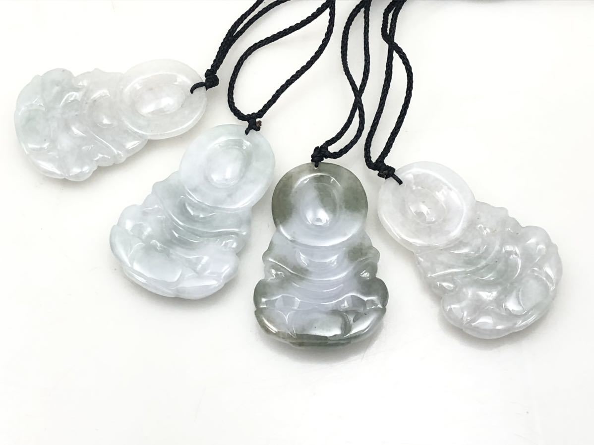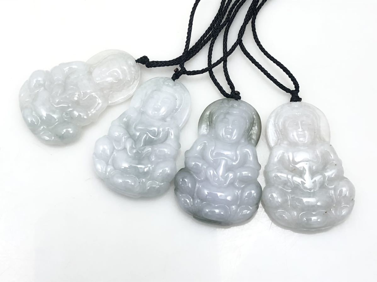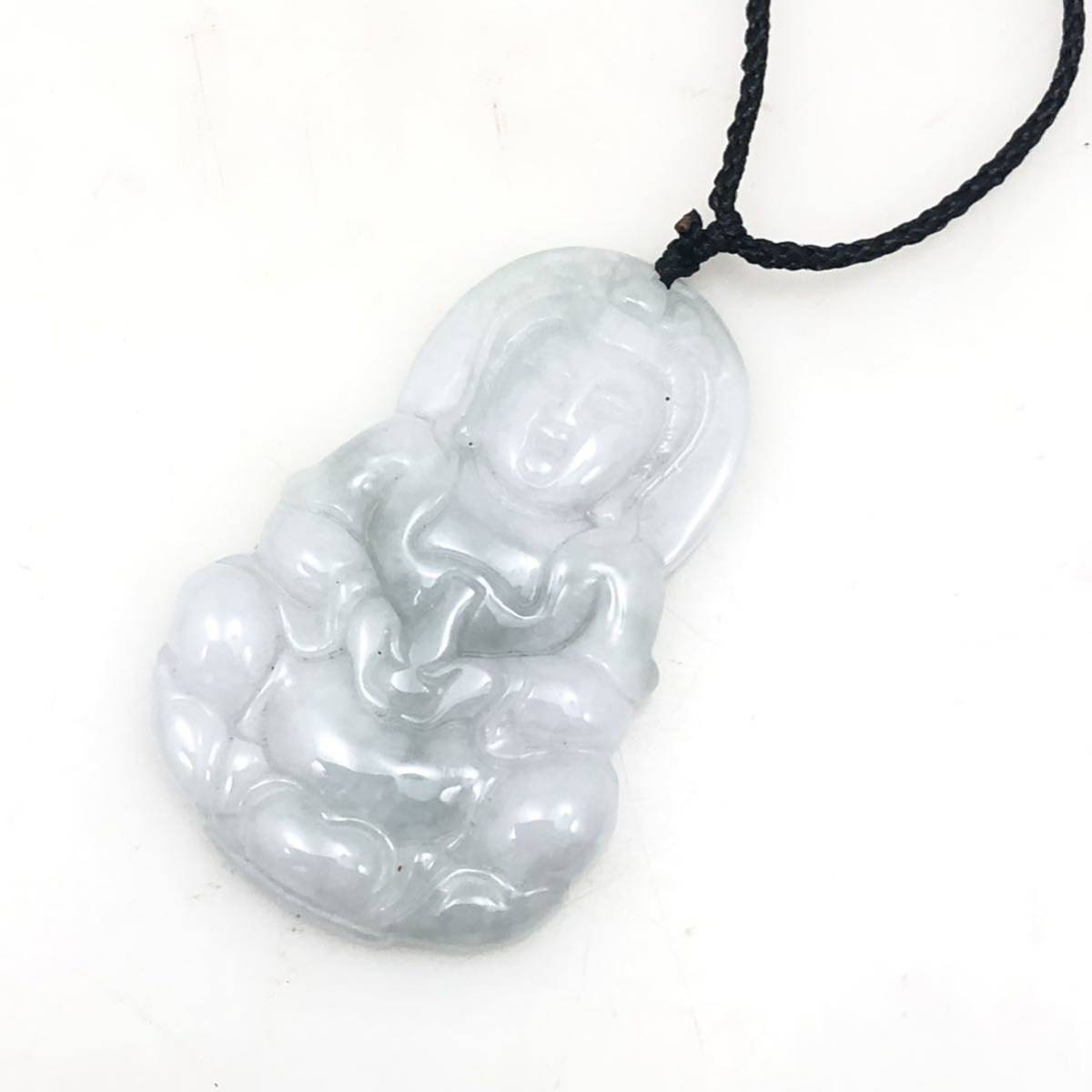 翡翠で作った観音様のペンダント 翡翠 お守り 魔除け 縁起物 招運 観音 ヒスイ ハンドメイド ネックレス 天然石 No.19 送料込み