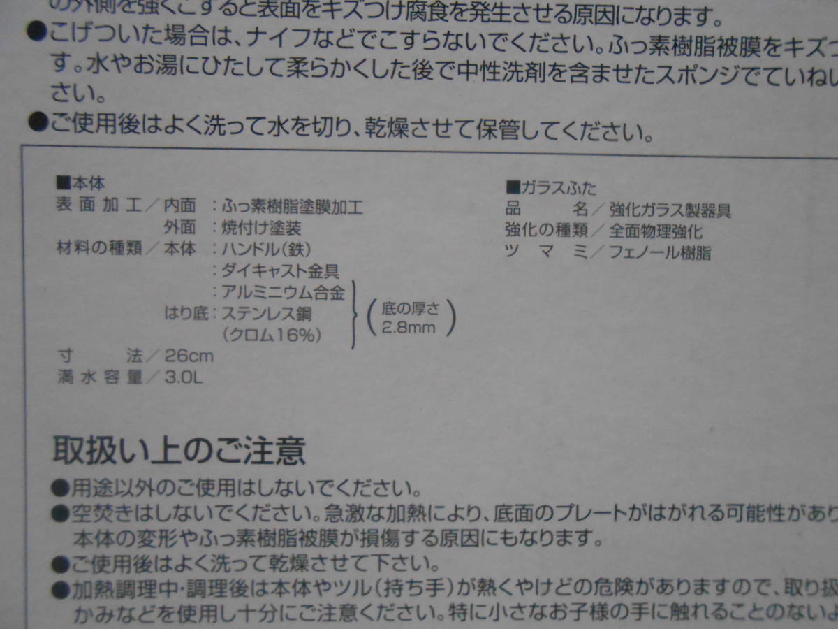商品説明 | ◎商品 ☆美品 コーナン IH対応 26cm すき焼き 鍋!80サイズ発送 現状出品となります。最後まで画像を見た上でのご入札をお願い致します。 商品到着後の受取連絡は忘れずに行って下さい。宜しくお願いします。 以上のような内容なので、ご理解頂ける方のみのご入札を宜しくお願い致します。 ◎外寸(多少の誤差はご理解下さい) サイズ・・・Wcm×Hcm×Dcm USED品となりますので『NC/NR』とさせていただきます。 詳細動作、専門的なご質問等お答えできませんのでよろしくお願いします。 ※最近、情報入力(ナビ入力)のない方の悪戯入札が多い為、落札後24時間以内に情報入力がない場合は再出品させて頂きますのでご了承下さい。宜しくお願い致します。 ☆外観 中古品となりますので使用感、写真に写らない細かい傷等有ります。 状態に関しては必ず写真にて確認の上ご検討下さい。 ☆付属品 ・本体(画像にある物のみとなります) 上記のみとなります。 その他の付属品はありません。 その他の周辺機器に関しましては落札者様にてご用意下さい。 ☆発送サイズ 佐川急便 元払い 80 サイズでの発送となります。 ↓の佐川急便のサイトから運賃をお調べ下さい。 https://www2.sagawa-exp.co.jp/send/fare/input/?_ga=1.3966320.196604449.1480509007 かんたん決済後の直接の引取り大歓迎です! その他の発送はお受けできません。 ☆支払いについて 落札代金+送料 となります。 出品商品は画像に写っているものが全てとなります。 (対象商品の動作を確認する為の製品や器具についても付属品にはなりません。) 当方ではPC環境によるお取引を前提として出品しておりますので、ご使用のパソコンのブラウザや設定により、実物とは異なる色彩表示される場合があります。 ご入札の際にはご注意ください。 携帯電話からのお取引の場合は落札後すぐに発送先などの詳細を取引ナビにてご連絡下さい。 落札通知が届かない場合がございます。システム上携帯電話からのお取引が困難な場合もございます。ご了承下さい。 |