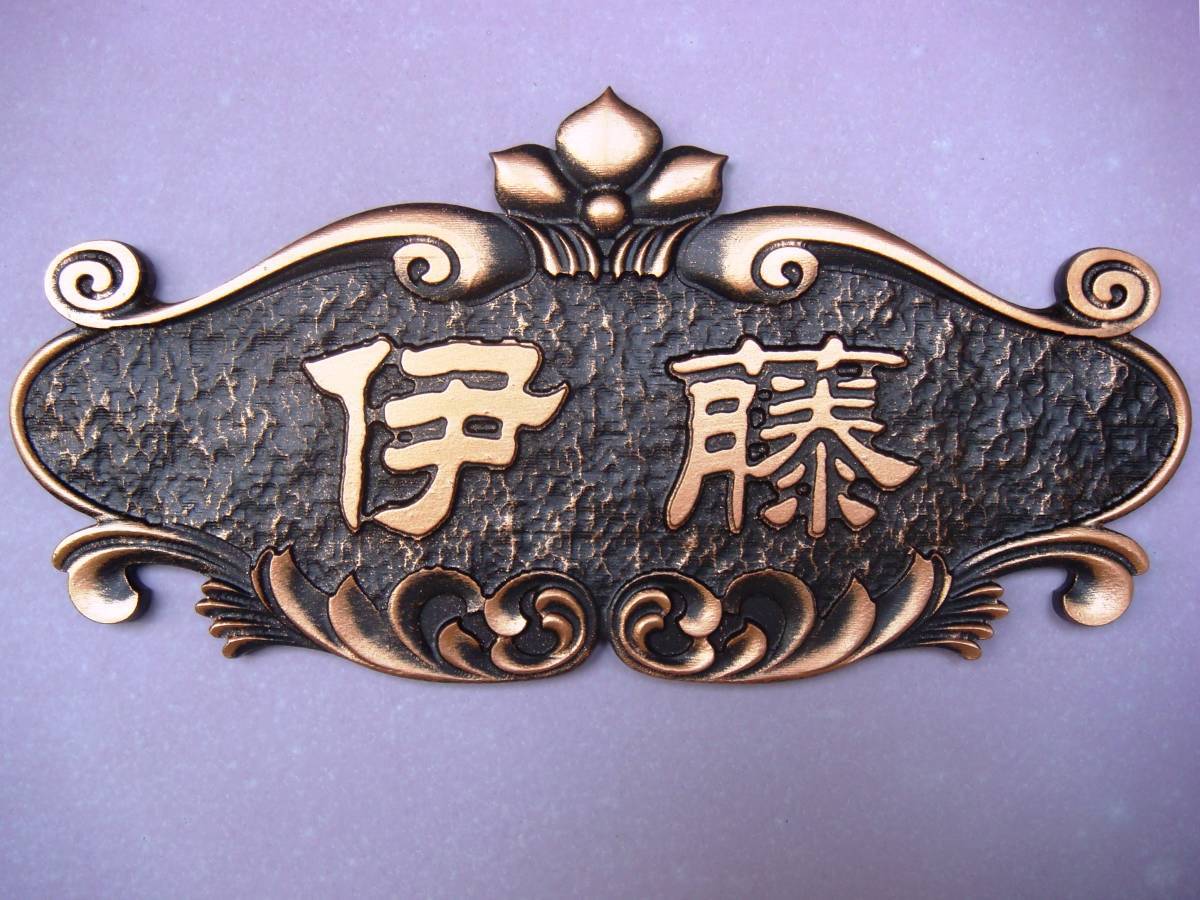 苗字限定 彫刻表札 鈴木様完成品 ★ 古い銅色 昔の感じする アクリル材製 レーザ切断 浮彫 高級感 ★ 新品