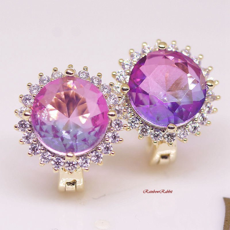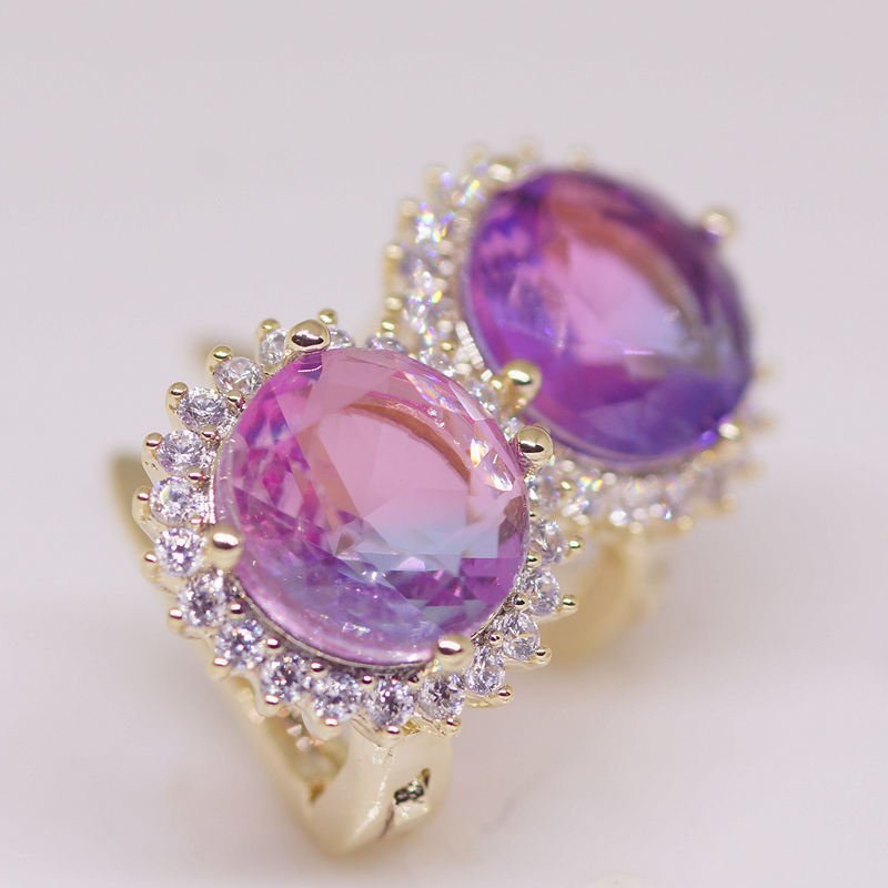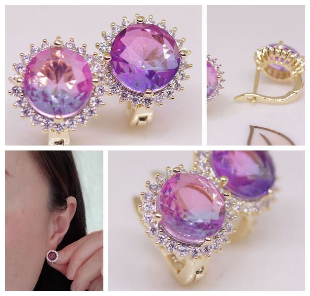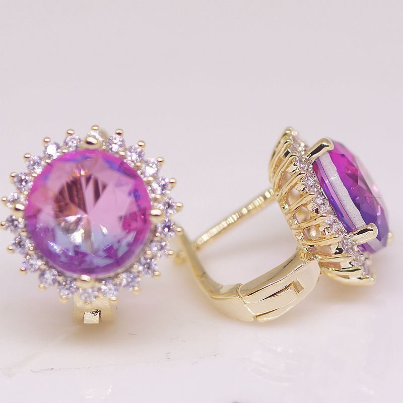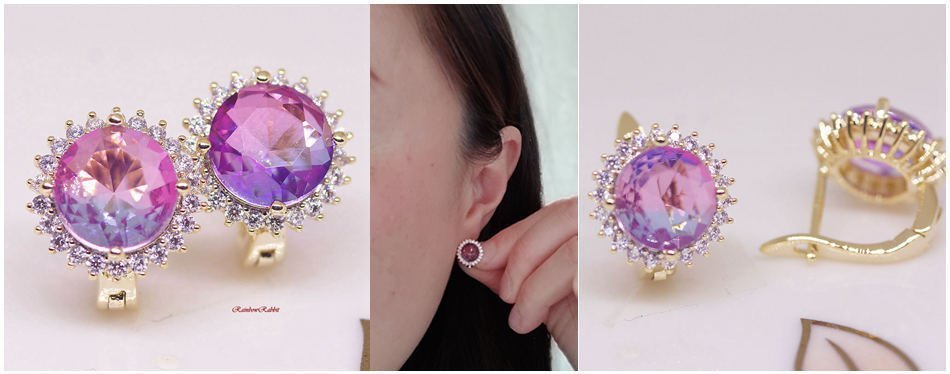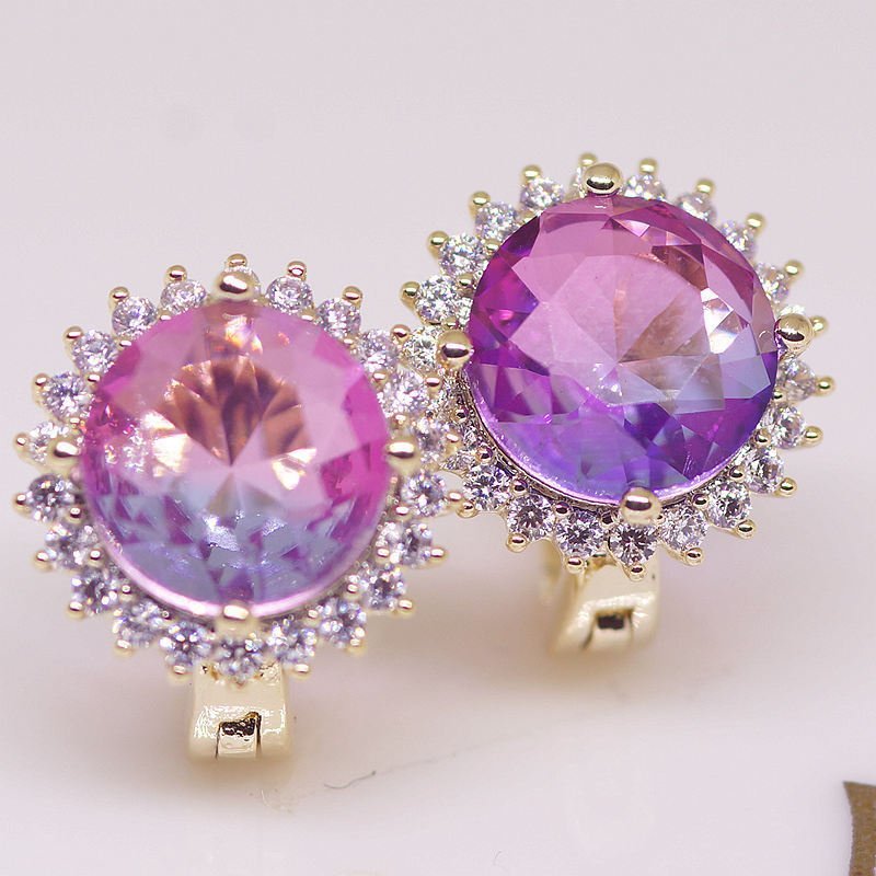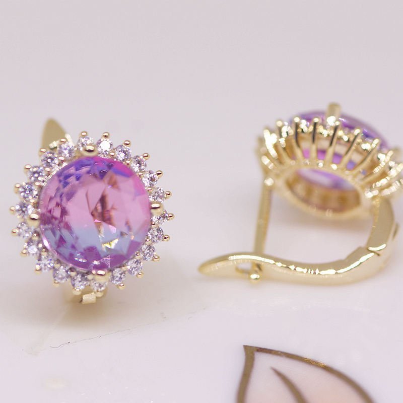 18K RGP ゴールド ダイヤ CZ 薄紫 フラワー ピアス gp5329