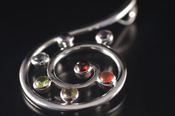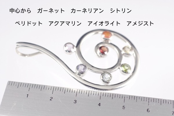 シルバーのフレームに包まれた7種類の天然石のペンダントトップ