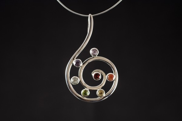 チャクラにはそれぞれに対応する色があり、その色に深くリンクするパワーストーンで作られたスパイラル型のペンダントトップになります。