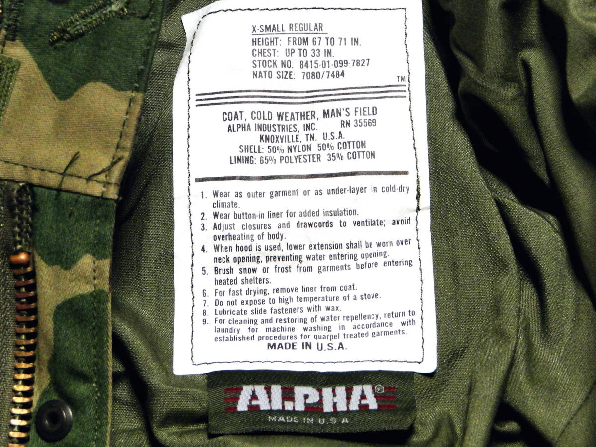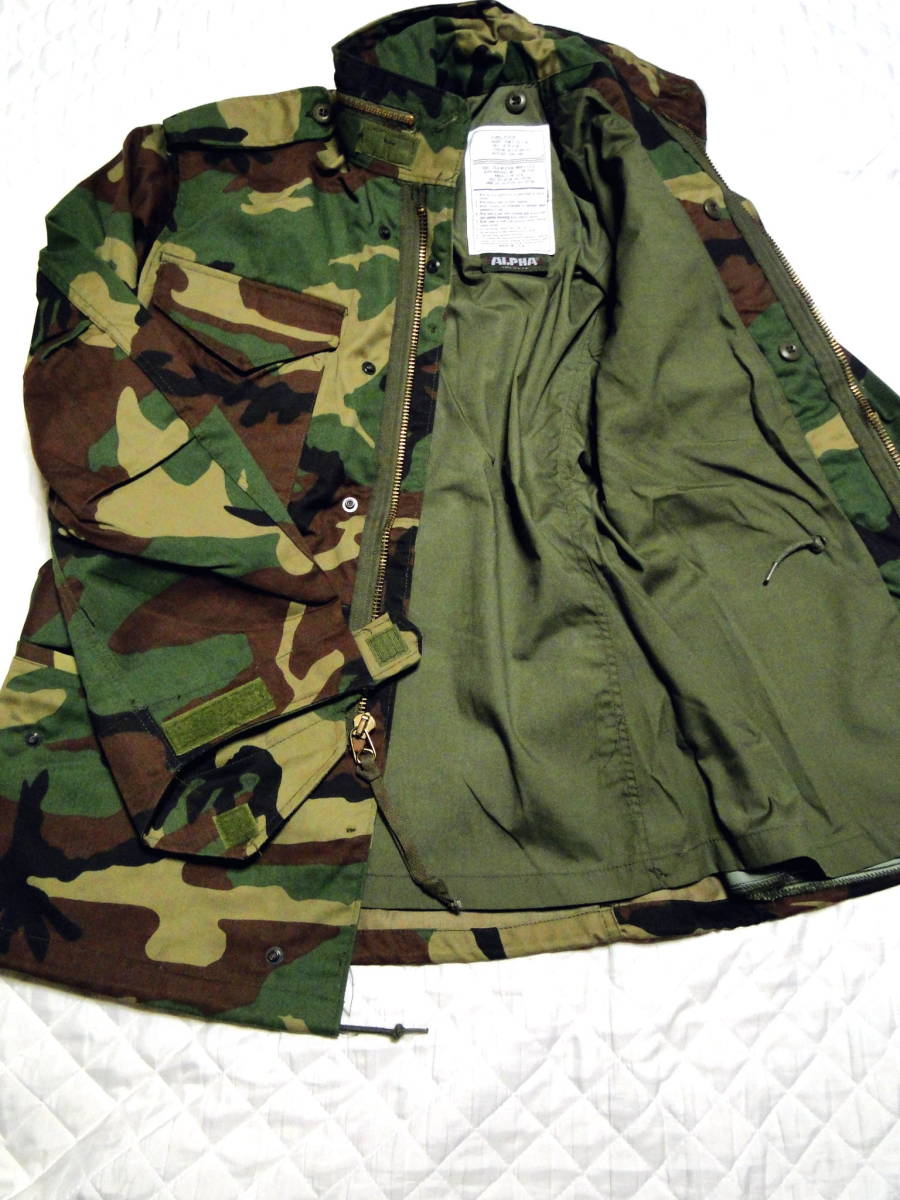 ご存知!!! 貴重な米国製 ALPHA(アルファ)社 ☆アメリカの服装史上にその 名を轟かす米軍フィールドJKの名品! 誰でも知ってるM-65 JKのアルファの民間用の 1990年代のアメリカ製 コマーシャル(民間用)商品 こちらのシェルは50/50の 生地になります。 ジッパーも全てブラス(真鍮)が 使われています! 現在、 アルファ社はアメリカ製の M-65JKを生産していません! 特に希少なX-Small-REG、 人気のウッドランド・カモです! 今や、アメリカ生産品は、 貴重な逸品です。 ■商品詳細 ALPHA(アルファー) 綿50%、ナイロン50% サイズ:XS /カラー ;ウッドランドカモ 実寸: 身丈75cm 身幅50cm 肩幅48cm 袖丈67cm 日本のSサイズ位です。 1990年代品/新品/送料込 デッドストック商品は 新品・未使用品です.、 経年によりフラッシャーが 取れているものの、 畳みシワのあるもの、 また,発送時には、気付かなかった 経年に因るホコリ汚れ等が ある場合もございますので、 予めご了承ください。 ご理解頂きまして 十分に検討の上、 決断をお待ち申し上げます。 | ||||
